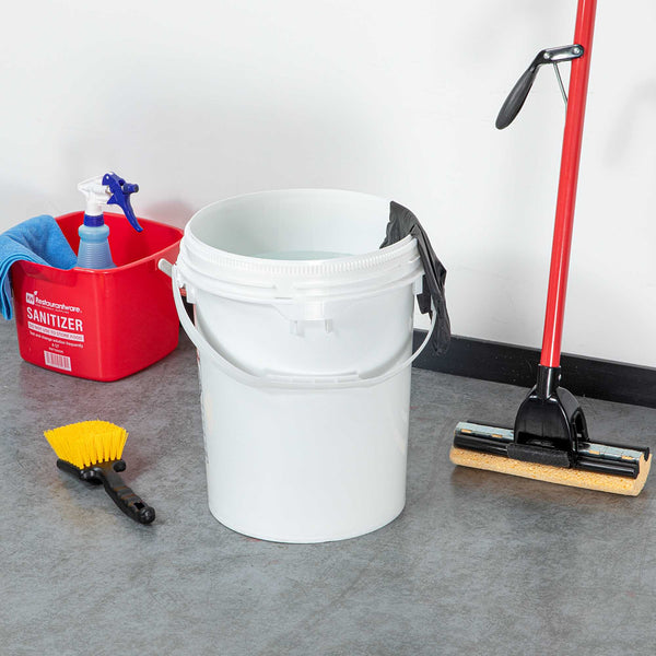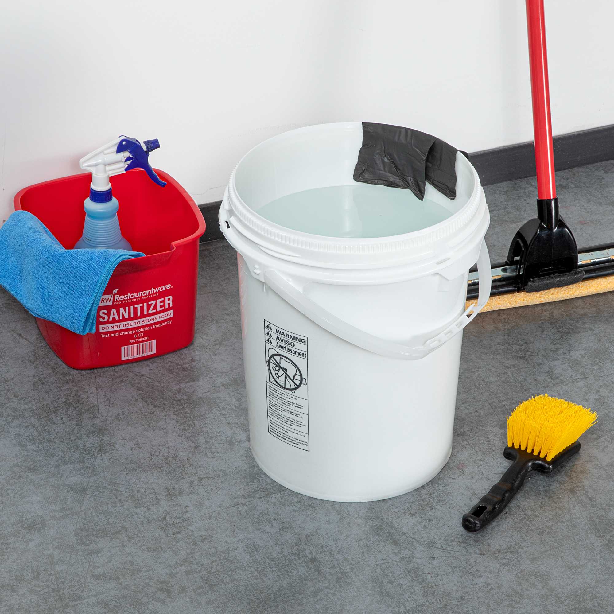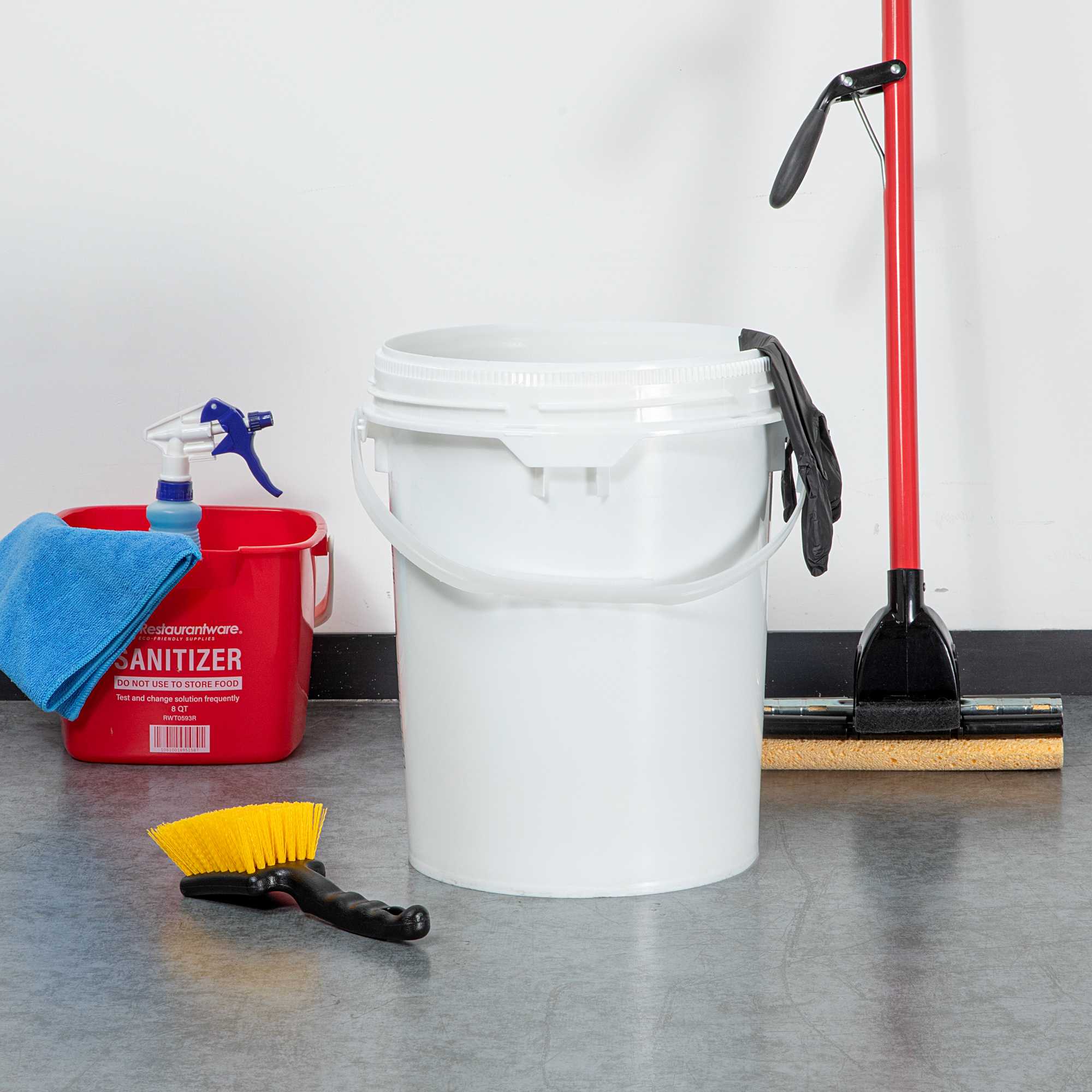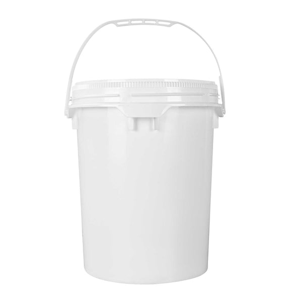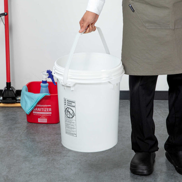 Streamline your storage and transportation needs with our Met Lux 5-gallon Round White Plastic Screw Top Pail. This screw top pail is UN rated, ensuring it meets stringent standards for safe transport and storage. Crafted from FDA-compliant plastic, this screw top bucket ensures durability and safety for a variety of applications. Pair this tamper-evident screw top bucket with its compatible lid (RWT2043W) to secure the contents inside. This bucket includes an airtight gasket for moisture resistance, ensuring that contents remain dry and safeguarded from environmental elements. With an attached handle, this pail offers easy carrying and convenient transport, making it ideal for various tasks in the foodservice industry. Measuring 11.25 inches in diameter by 15.25 inches in height, this bucket has a total capacity of 5 gallons, providing ample space for your storage needs. Sold in a 1 count box. Lid is available and sold separately.