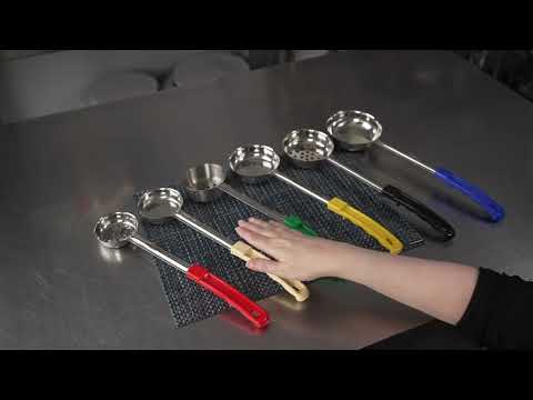 Available in both perforated and solid designs, these portion control ladles enhance the purpose and usability while cooking. The perfect tool for any recipe.