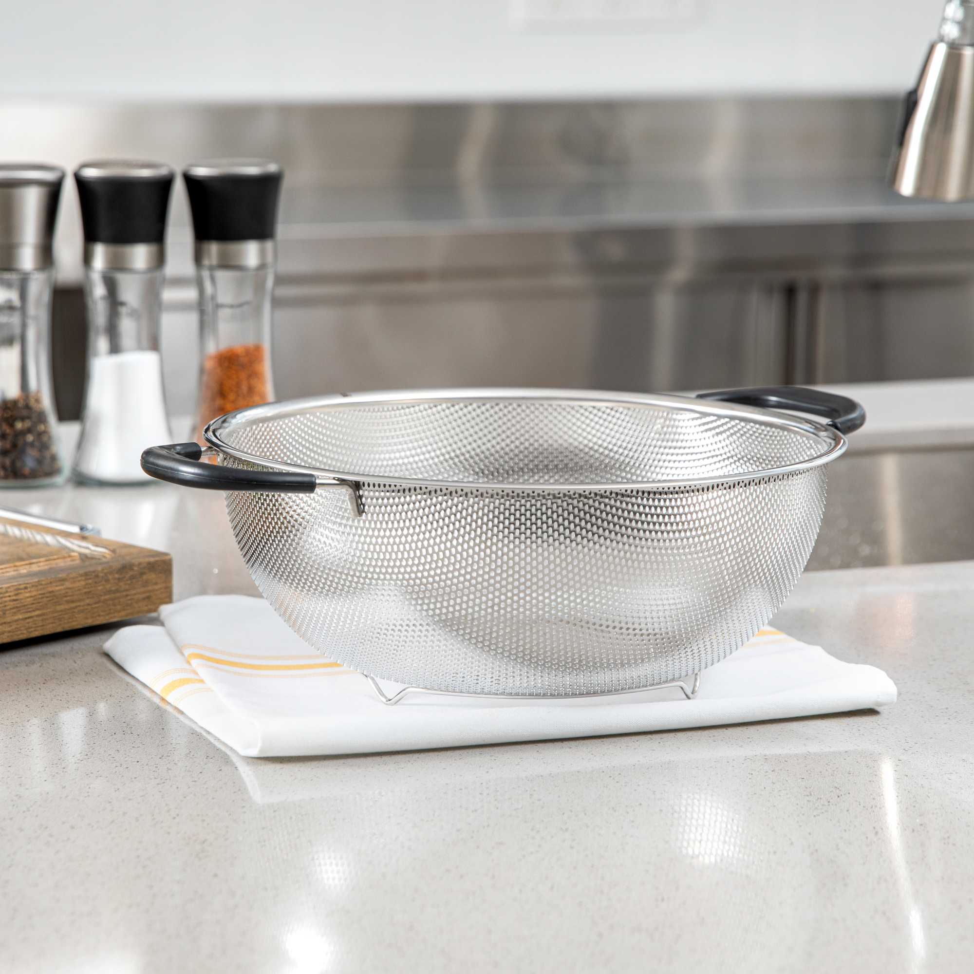 5 QT STAINLESS STEEL MESH COLANDER - WITH HANDLES