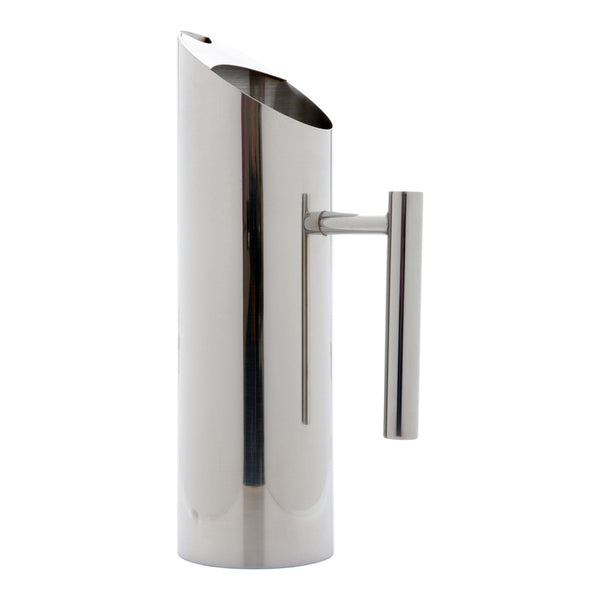 Enhance your upscale beverage service with this contemporary Met Lux Stainless Steel Water Pitcher. Combining angled lines with modern design, this stainless steel water carafe adds a splash of refined luxury to any occasion. Its high-shine polished finish adds a striking detail to any tablescape, while its sleek and cylindrical handle provides a secure way to transport and pour your beverages. Featuring a built-in ice guard, this metal pitcher ensures smooth, accurate, and splatter-free pouring to provide guests with a flawless dining experience. Each stainless steel water pitcher has a total capacity of 50 ounces. Ideal for commercial use in restaurants, hotels, cafes, catering companies, and other foodservice establishments, this 50 oz stainless steel pitcher is incredibly durable and dent-resistant. Shipped in a 1 count box.