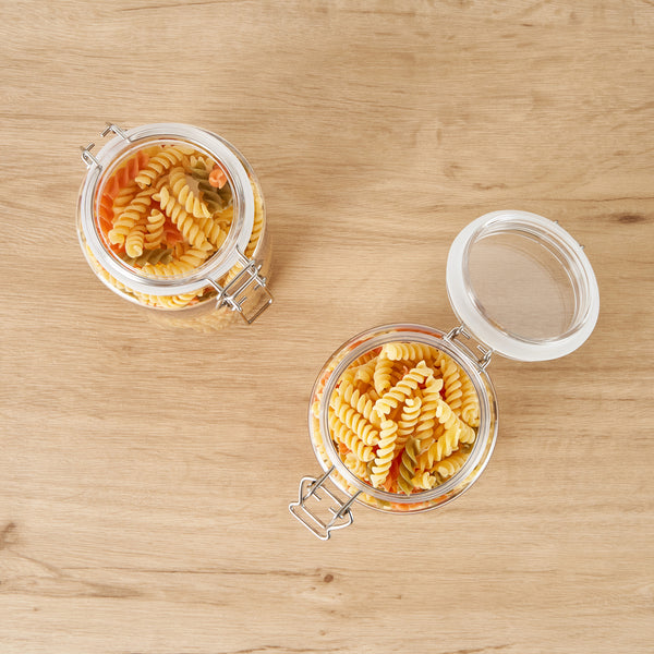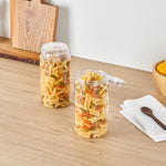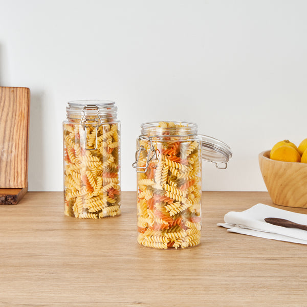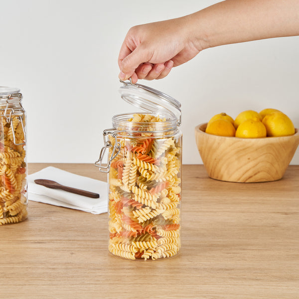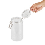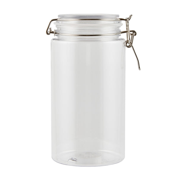 Keep ingredients fresh and organized with our Met Lux 51-ounce Round Clear Plastic Storage Jars. The hinged top lid of these clear jars offers convenient access without the need for unscrewing. These plastic storage containers feature a rubber gasket to provide an airtight seal, ensuring your contents remain fresh and free from contaminants. Crafted from premium plastic, these durable and sturdy kitchen canisters offer reliable storage for various items. The wide mouth of these plastic jars makes filling, scooping, and cleaning a breeze, allowing for effortless usability. Perfect for storing dry spices, herbs, and baking ingredients, these versatile plastic containers with lids keep your kitchen neat and clutter-free. Designed with a clear finish, these storage jars allow for easy identification of contents while adding a visually appealing touch to any storage space. Measuring 4.21 inches in diameter by 8.27 inches in height, these plastic containers offer ample storage with a capacity of 51 ounces. Sold in a 20 count box.