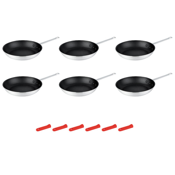 6 ALUMINUM 10" NON-STICK FRY PANS AND 6 RED SLEEVES