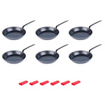 6 BLACK CARBON STEEL 16" PRE-SEASONED FRY PANS AND 6 SLEEVES