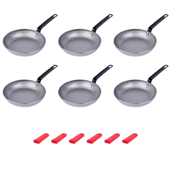 6 CARBON STEEL 9 1/2" NON-STICK FRY PANS AND 6 SLEEVES