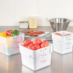 Effortlessly manage portion control and minimize waste in your kitchen. The Met Lux Plastic Food Container features red graduations that enable precise portion control, ensuring you cut down on unnecessary waste for efficient kitchen operations. Equipped with stable handles, this container ensures spill-free transport, making it ideal for busy settings where maintaining order with a plastic food container is critical. Made from durable PP plastic, this square storage container is designed to withstand the demands of high-volume kitchens while maintaining its integrity over time. Its dishwasher-safe design simplifies cleaning, allowing for effortless maintenance and hygiene management. With dimensions of 8.88 inches in length, width, and a height of 7.5 inches, this container is both hot food-friendly and cold food-friendly, providing versatile storage solutions. Enhance your kitchen's efficiency with this container. Each order includes 1 Met Lux Plastic Food Container.