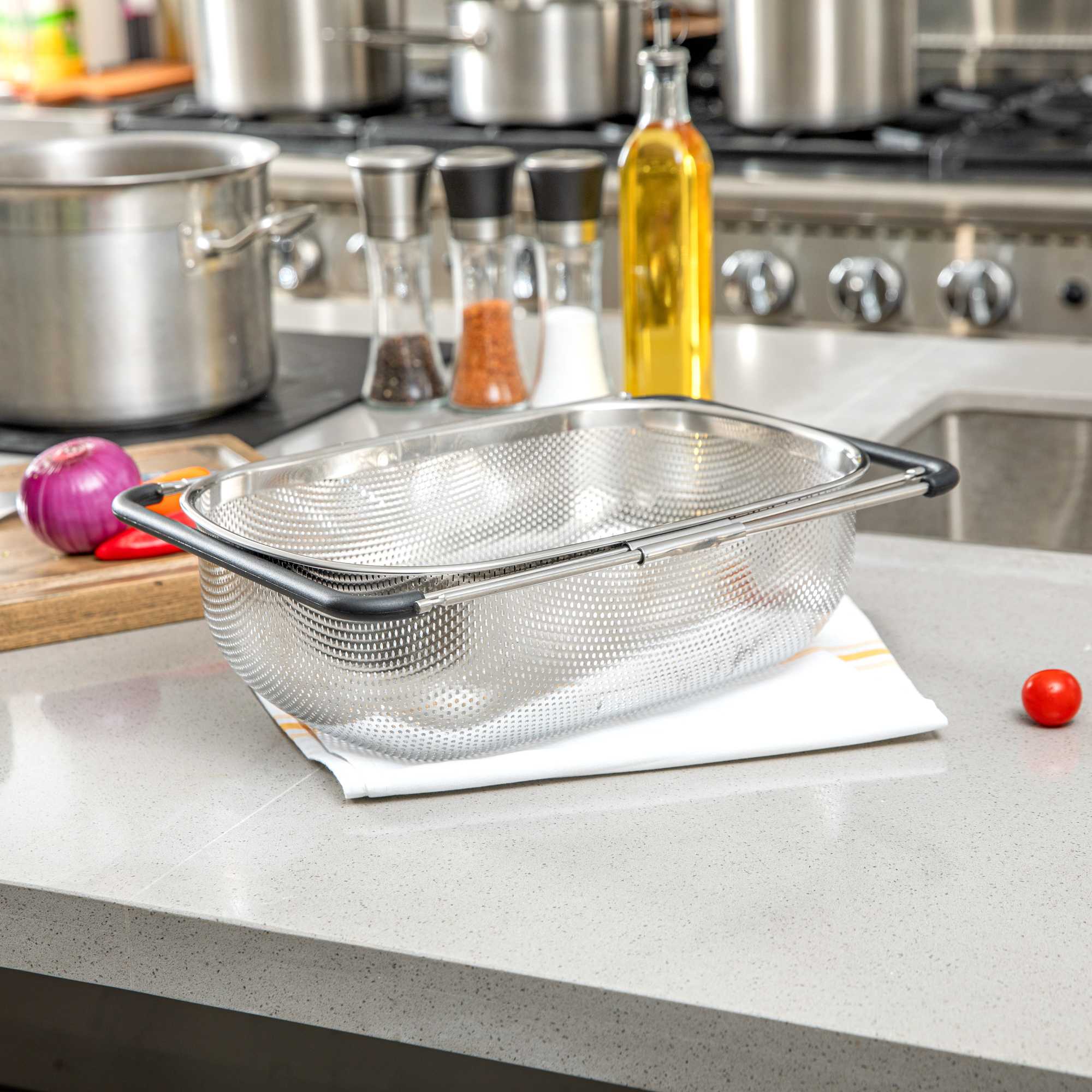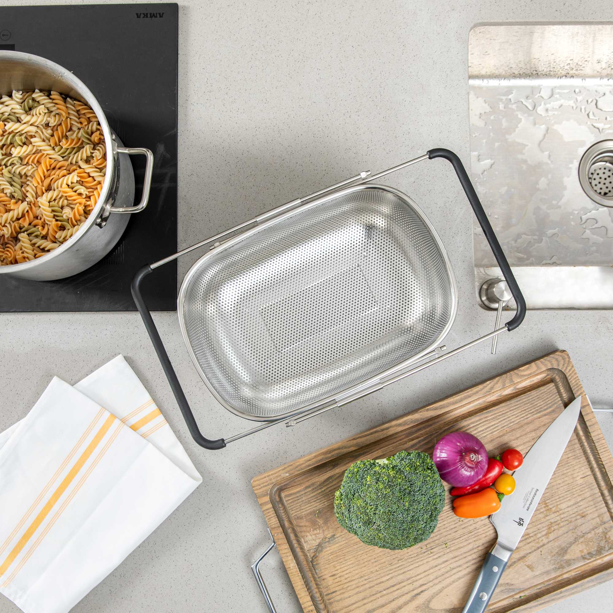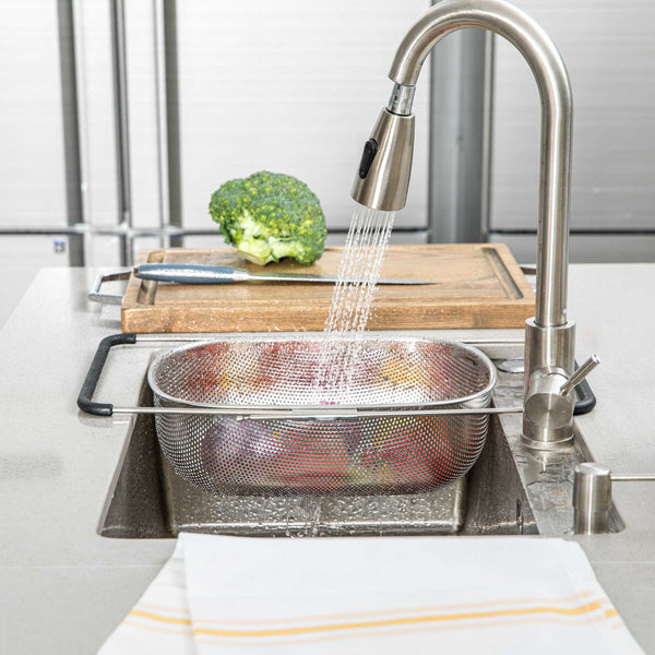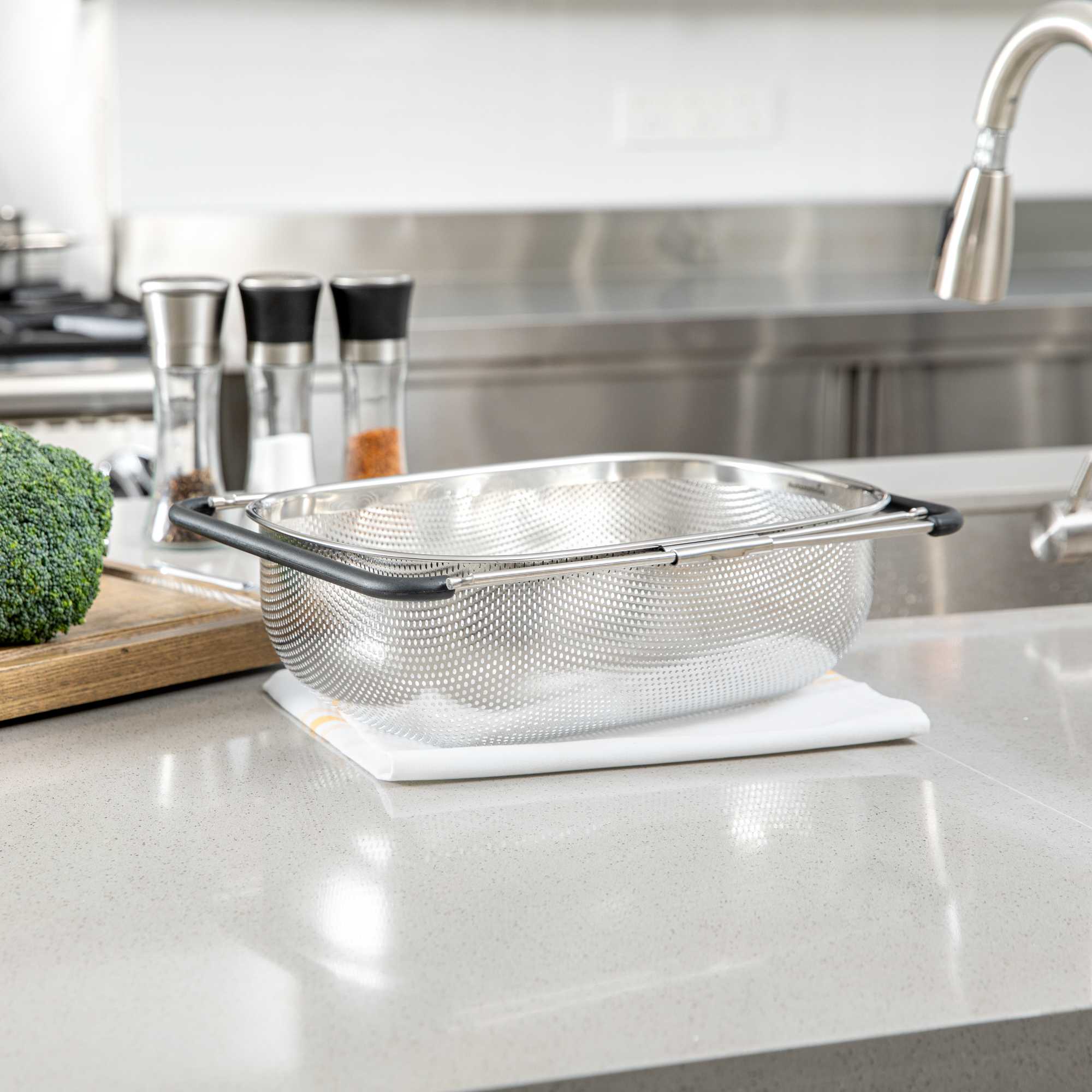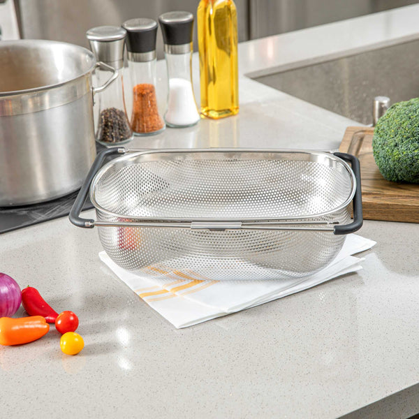 6 QT STAINLESS STEEL OVER-THE-SINK COLANDER - EXPANDABLE HANDLES