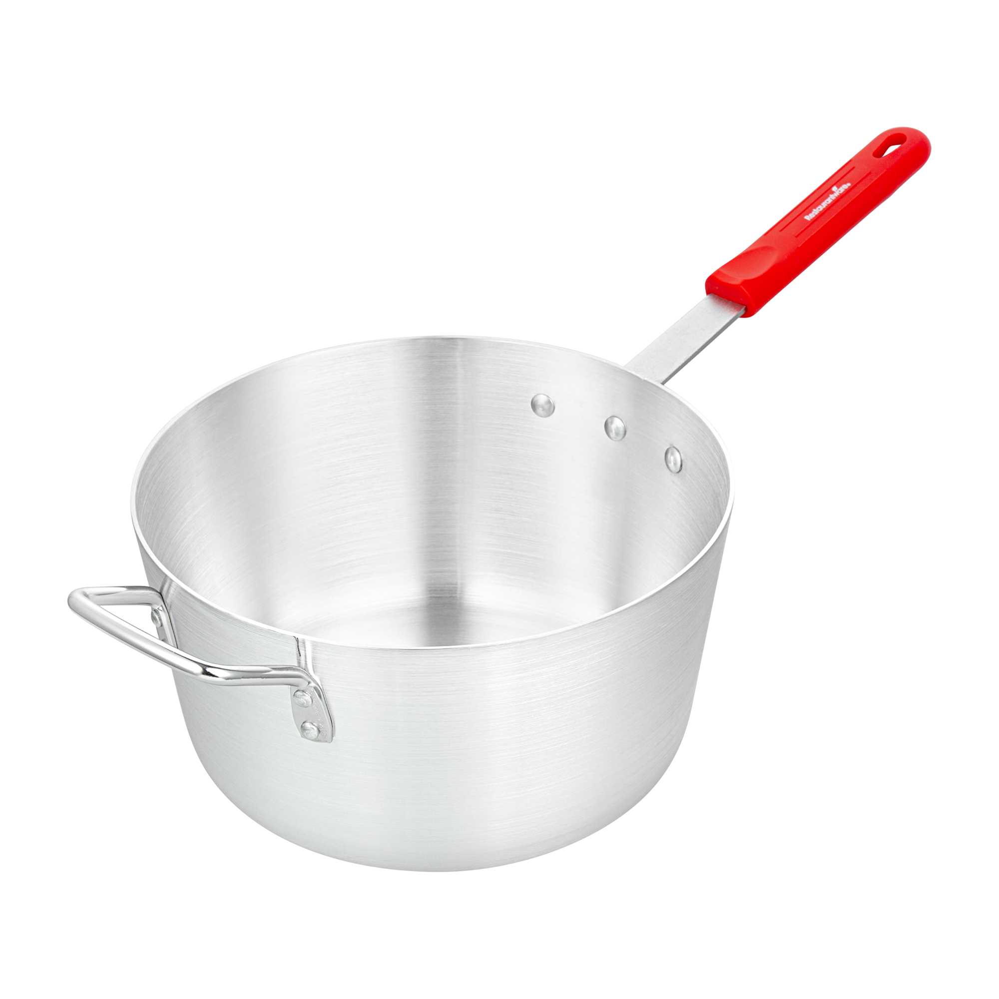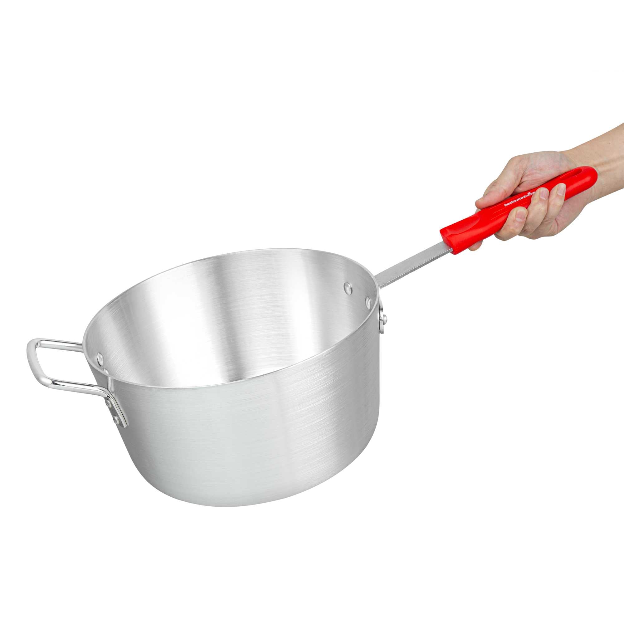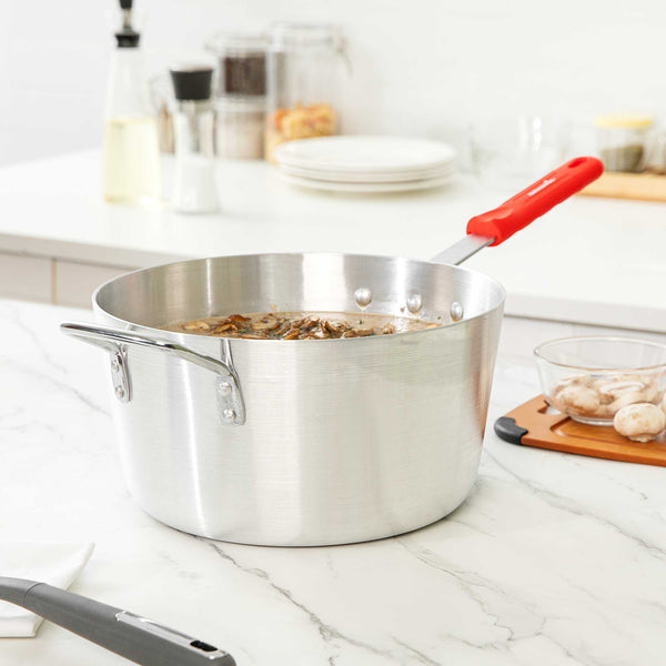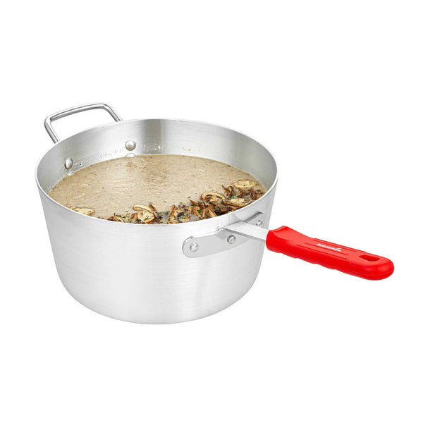 7 QT TAPERED ALUMINUM SAUCE PAN - WITH RED SILICONE HANDLE SLEEVE