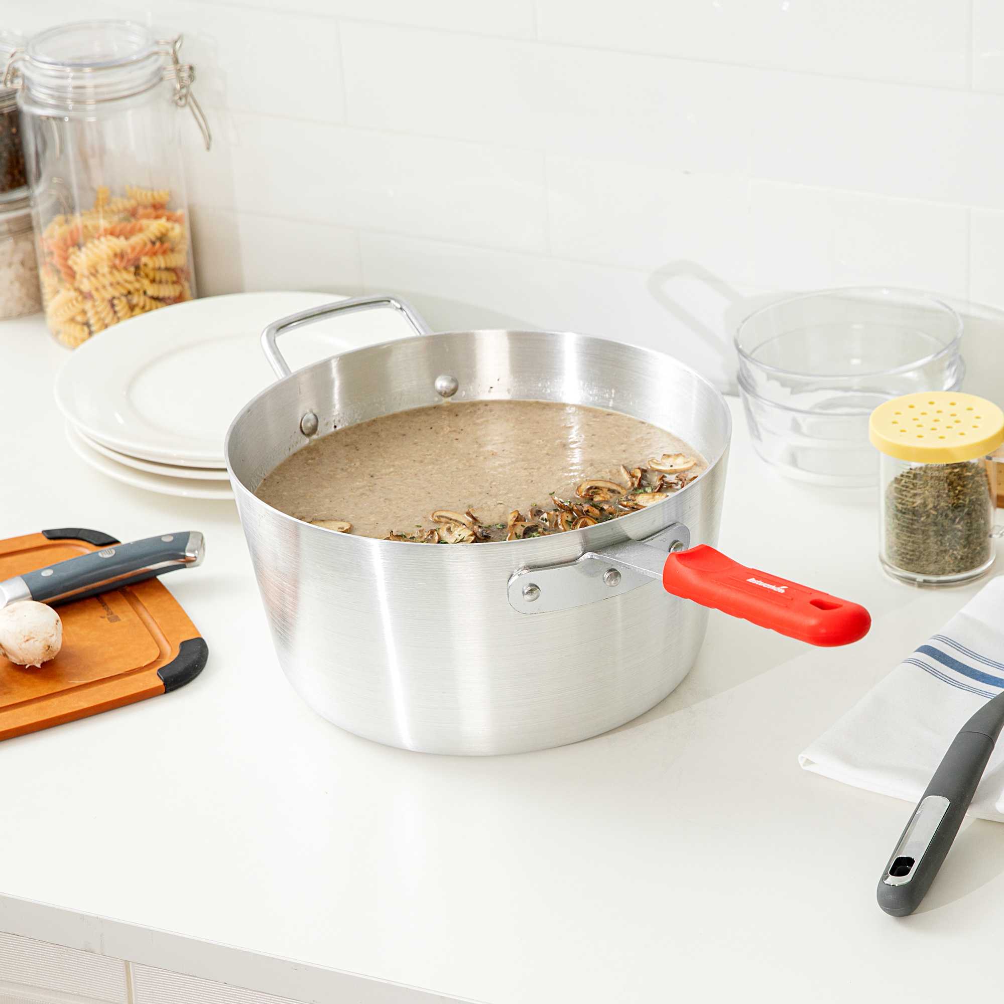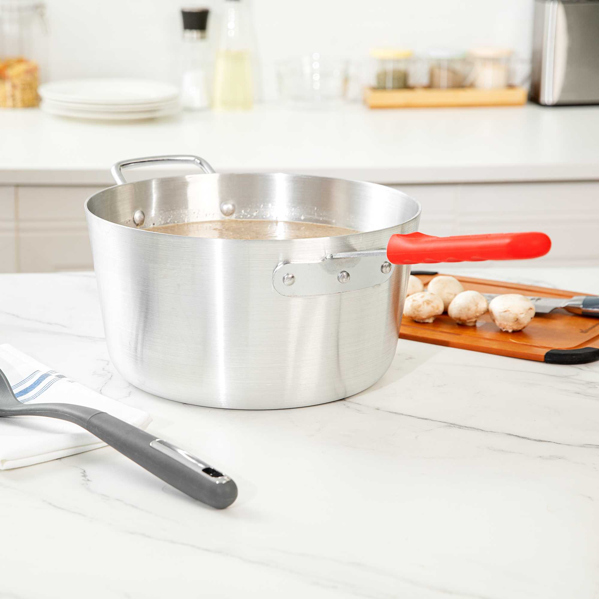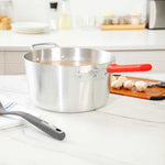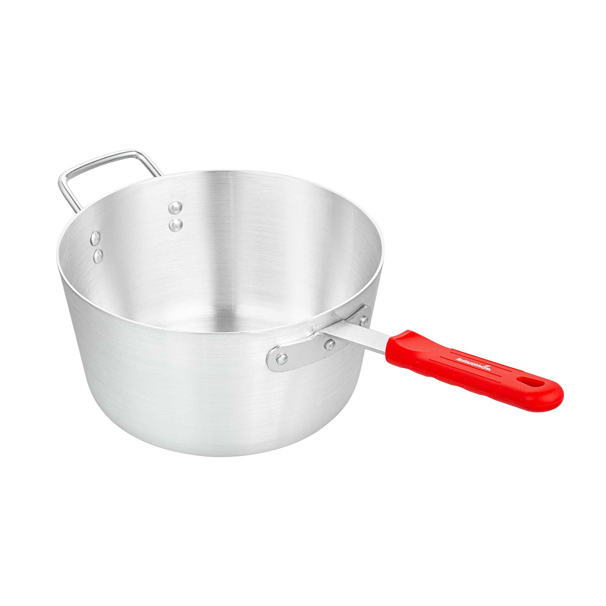 7 QT TAPERED ALUMINUM SAUCE PAN - WITH RED SILICONE HANDLE SLEEVE