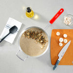 - Red silicone handle ensures a safe, cool grip