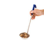 8 OZ STAINLESS STEEL SERVING LADLE - WITH BLUE HANDLE