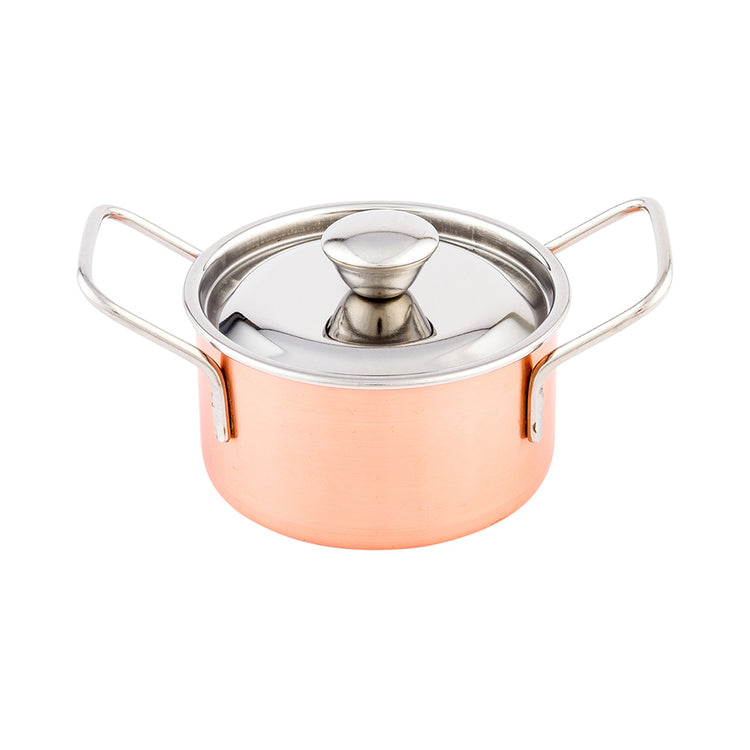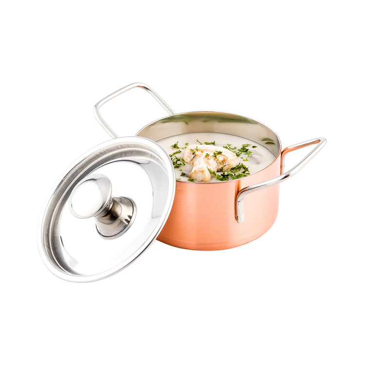 9 OZ COPPER STAINLESS STEEL SMALL INDIVIDUAL CASSEROLE POT - WITH LID
