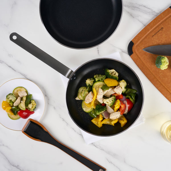 These fry pans have stainless steel bottom plates and are compatible with induction, ceramic, and electric cooktops. Use their versatility to enhance your cooking convenience.