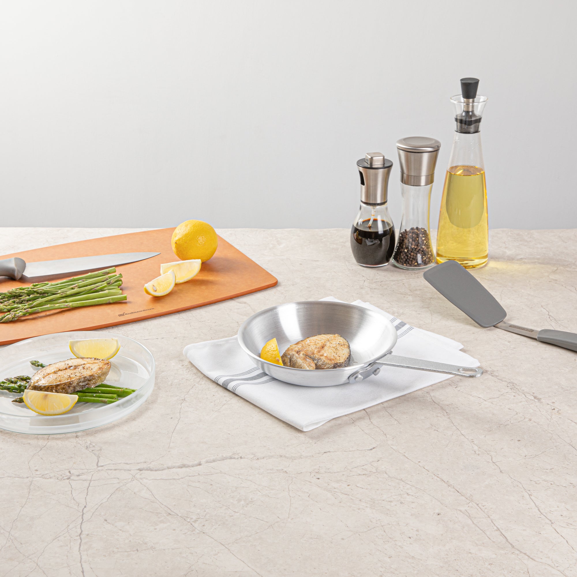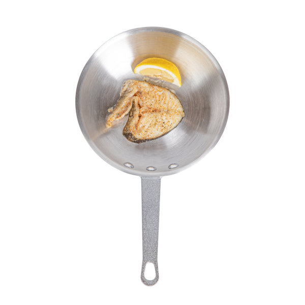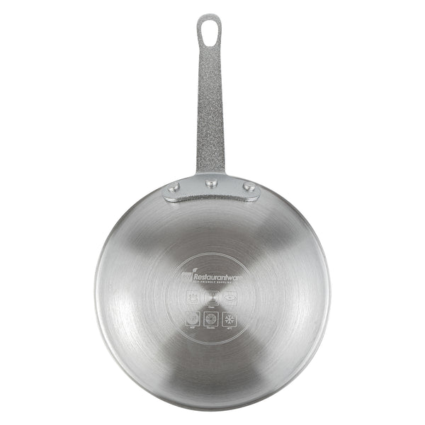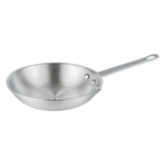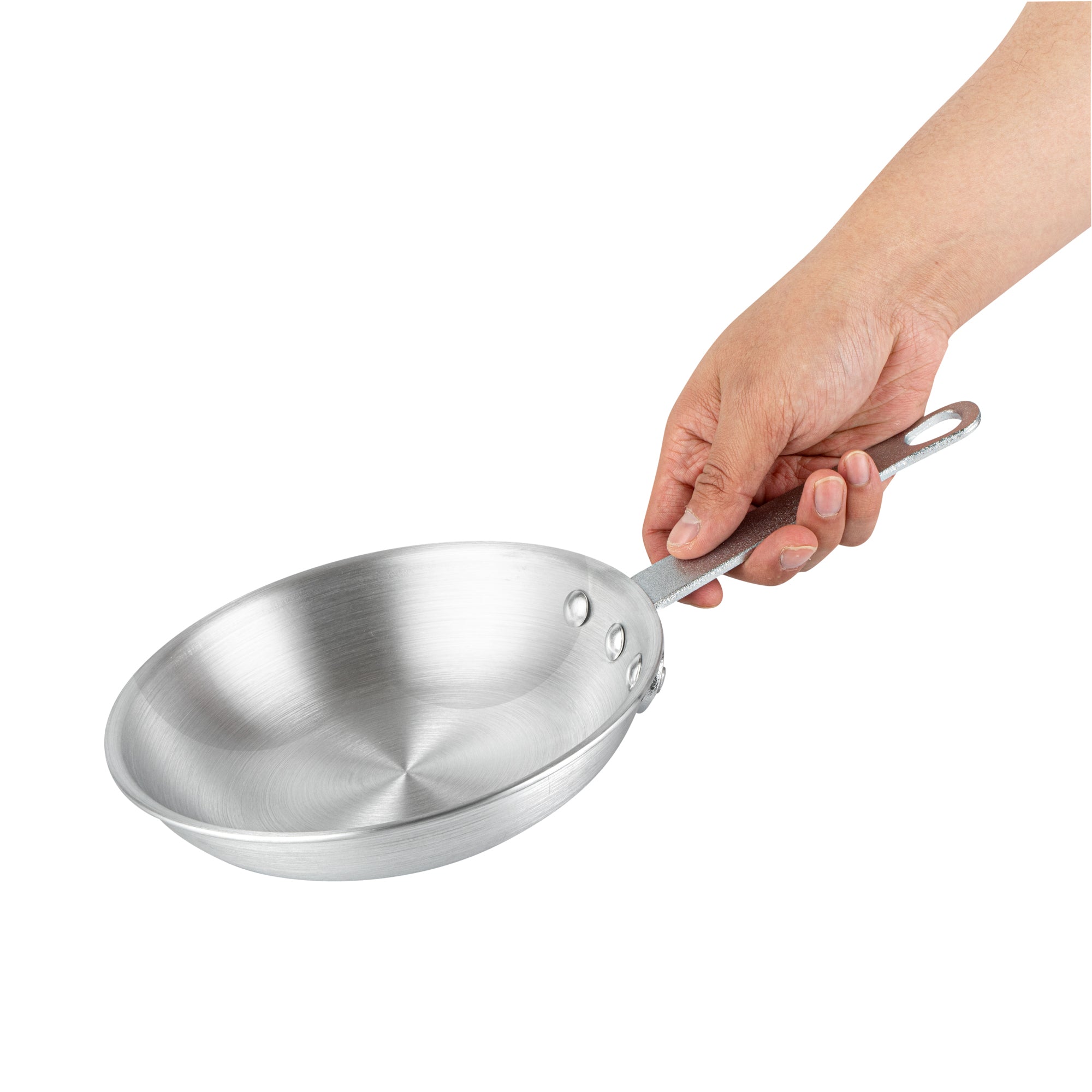 Experience superior cooking performance with our Met Lux Aluminum 7-inch Fry Pans. Crafted from 3.5 mm thick aluminum, these fry pans provide even heat distribution for consistent cooking results. These lightweight aluminum fry pans make it easy to flip, stir, and saute your dishes, while their satin finish is great for searing, sauteing, and browning food. The triple-riveted handle of these frying pans ensures a secure and comfortable grip during use. These skillet pans also feature a convenient hanging hole, making them easy to store and keep within reach. Showcasing a gleaming silver finish, these silver fry pans enhance the aesthetic appeal of your cooking ware. These aluminum skillets, designed for hand washing, ensure optimal care and maintenance. Measuring 13 inches in length by 2.25 inches in height, including the handle, these 7-inch fry pans offer ample space for frying a variety of ingredients. Sold in a 6 count box.