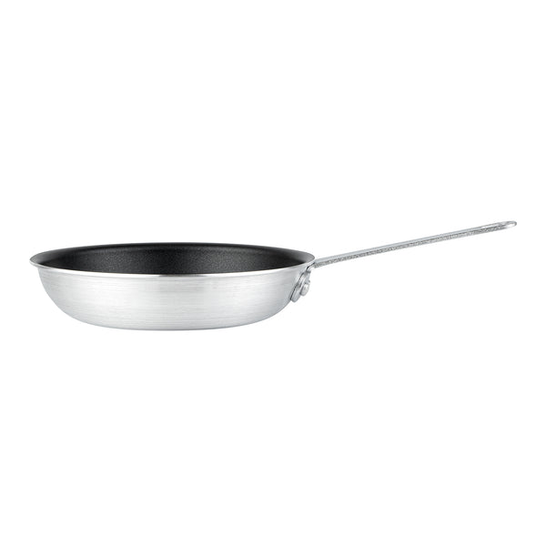 Upgrade your kitchen arsenal with our Met Lux Aluminum 8-inch Fry Pan. This PTFE non-stick fry pan ensures food slides right off, making cooking and cleaning a breeze. Crafted from 3 mm thick aluminum, this lightweight aluminum fry pan offers even heat distribution and long-lasting durability. The triple-riveted handle on this skillet pan ensures a secure grip, while the hanging hole allows for easy storage in your kitchen. Conveniently induction-safe, this aluminum skillet allows you to cook various dishes on different stovetops. The sleek black finish adds a touch of sophistication to any kitchen setting. This pan is hand washable only to maintain its non-stick coating. Measuring 14.5 inches in length with a handle by 3 inches in height, this 8-inch non-stick pan provides ample space for all your cooking needs. Sold in a 1 count box.