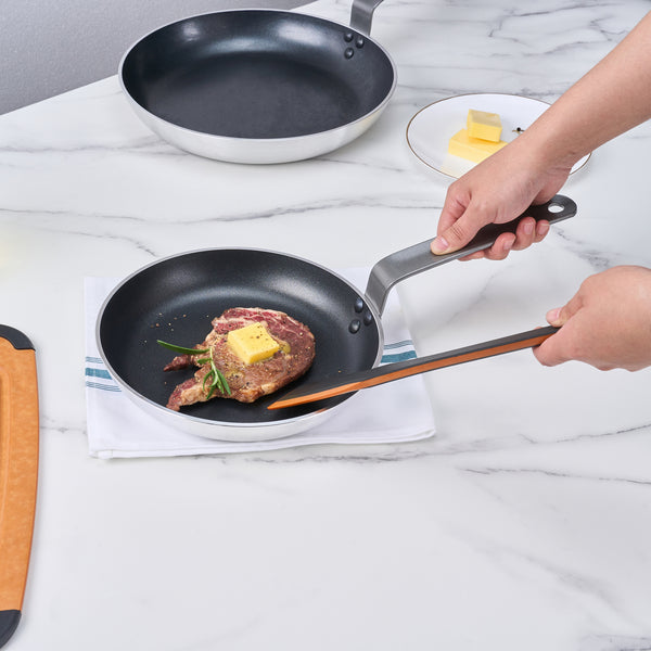 These fry pans have stainless steel bottom plates and are compatible with induction, ceramic, and electric cooktops. Use their versatility to enhance your cooking convenience.