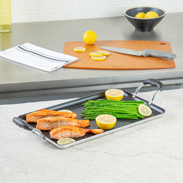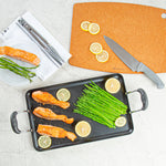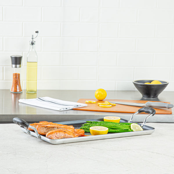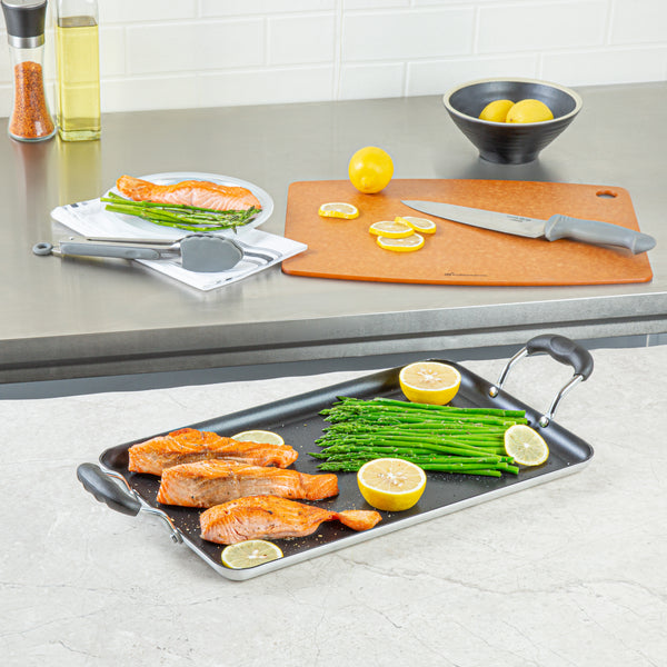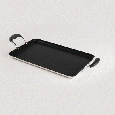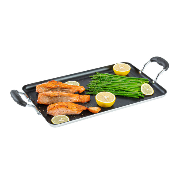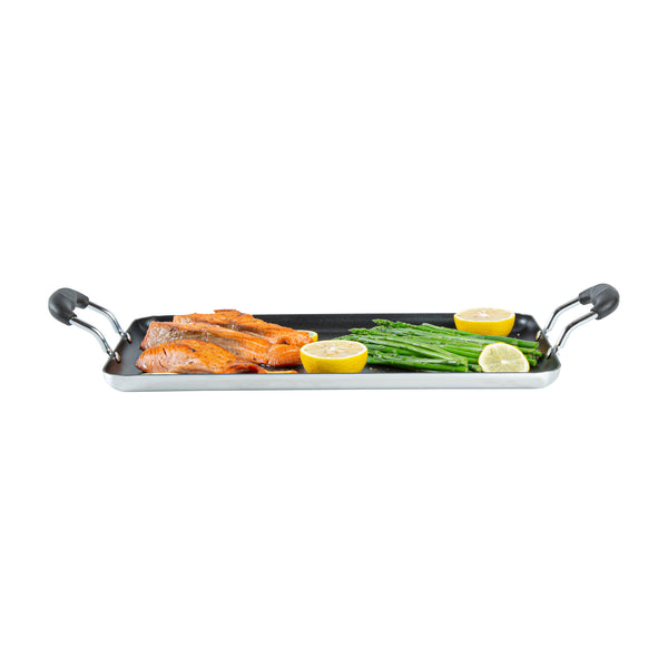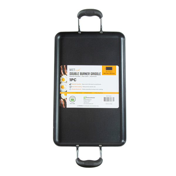 ALUMINUM DOUBLE BURNER GRIDDLE - NON-STICK, WITH BAKELITE HANDLES
