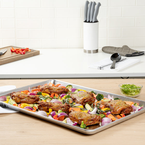 From baking to roasting or making a full-spread meal, these aluminum bun sheet pans suit all your needs. Use it for prepping too!