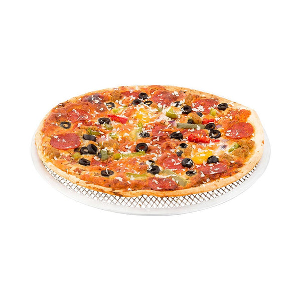 Craft the perfect pizza using our Met Lux Aluminum Mesh Pizza Screen. Made from heavy-duty aluminum, this pizza screen withstands long-lasting use in your foodservice establishment. Designed with a mesh surface, this aluminum pizza screen allows for a steady airflow to circulate to evenly bake pizzas or puff pastries. The large holes on the mesh screen also promote smooth browning for crusts and stops pies from getting soggy by releasing excess moisture. This mesh pizza screen has a reinforced rim that makes it easy to handle during use. Perfect for frozen pizzas, this pizza screen is freezer-safe and ideal for thawing and cooking. For a quick cleanup after baking, this mesh pizza screen is dishwasher-safe. Measuring 12 inches in length by 12 inches in width, this aluminum pizza screen is shipped in a 1 count box.