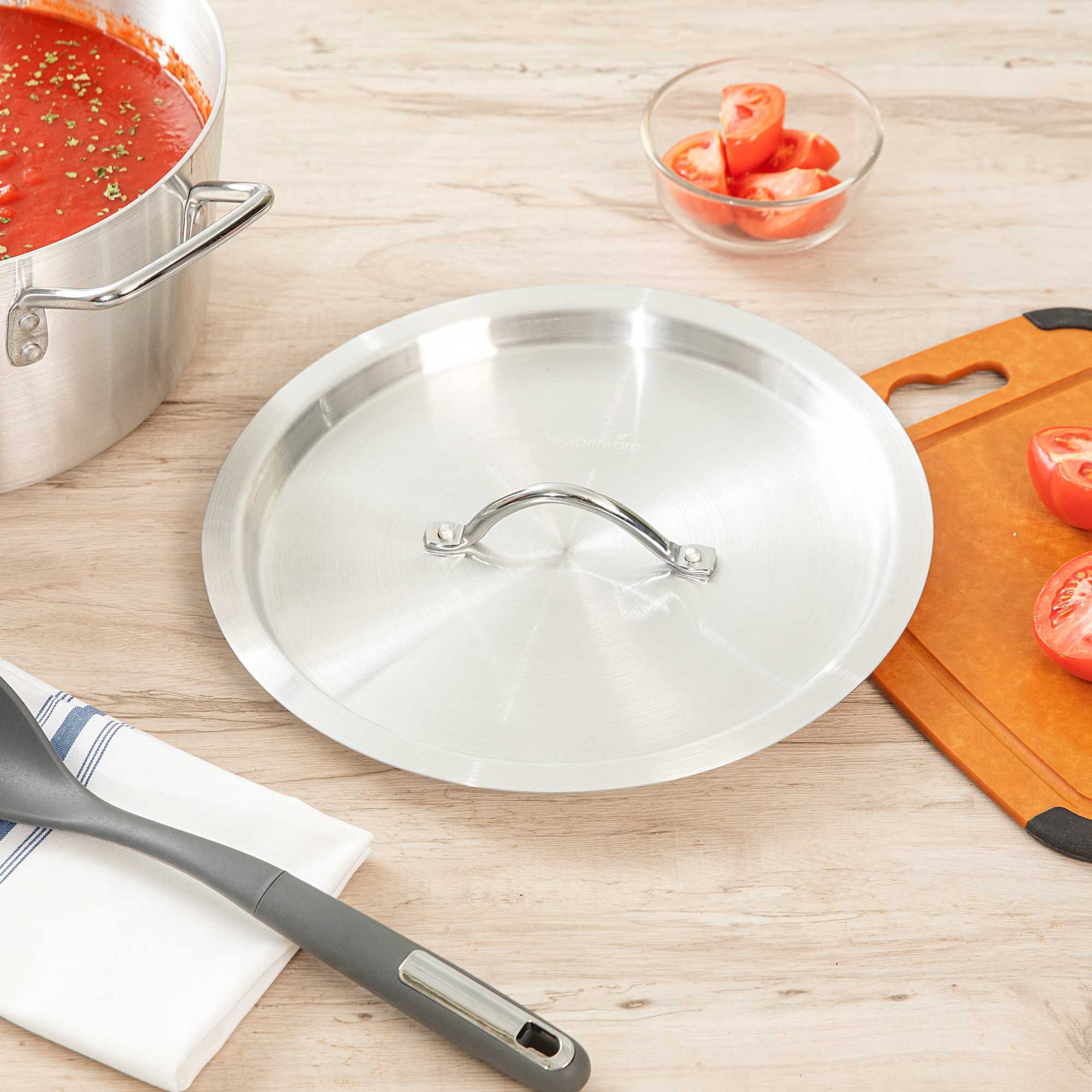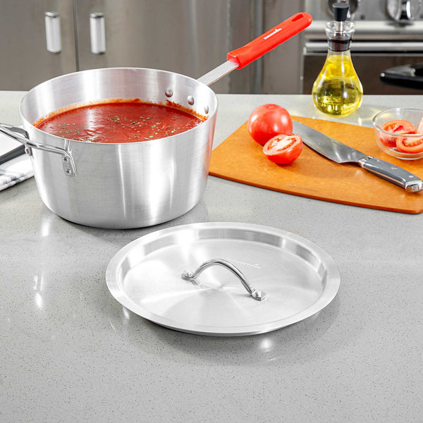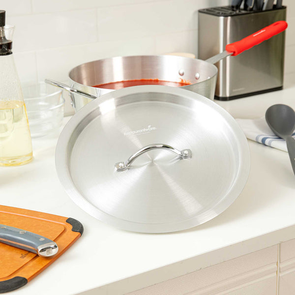 Ensure efficient cooking with our Met Lux Snug Fit Aluminum Lid. This aluminum lid seals tightly to reduce spatter and retain heat, making it a valuable addition to any professional kitchen. Made from corrosion-resistant aluminum, this pan lid provides a secure fit on tapered 7 quart saucepans (sold separately), promoting even heat distribution for optimal cooking results. Its oven-safe lid design offers versatility for a range of cooking and reheating applications, making it a trusted tool for chefs who demand reliability. With a lightweight construction measuring 12.21 inches by 12.21 inches, it is easy to handle and move between stovetop and oven. An easy-to-grab handle minimizes burn risk in busy kitchens, ensuring safety and efficiency during peak hours. Enhance your kitchen’s efficiency and protect your culinary creations with this essential cookware accessory. Sold in a 1 count box.