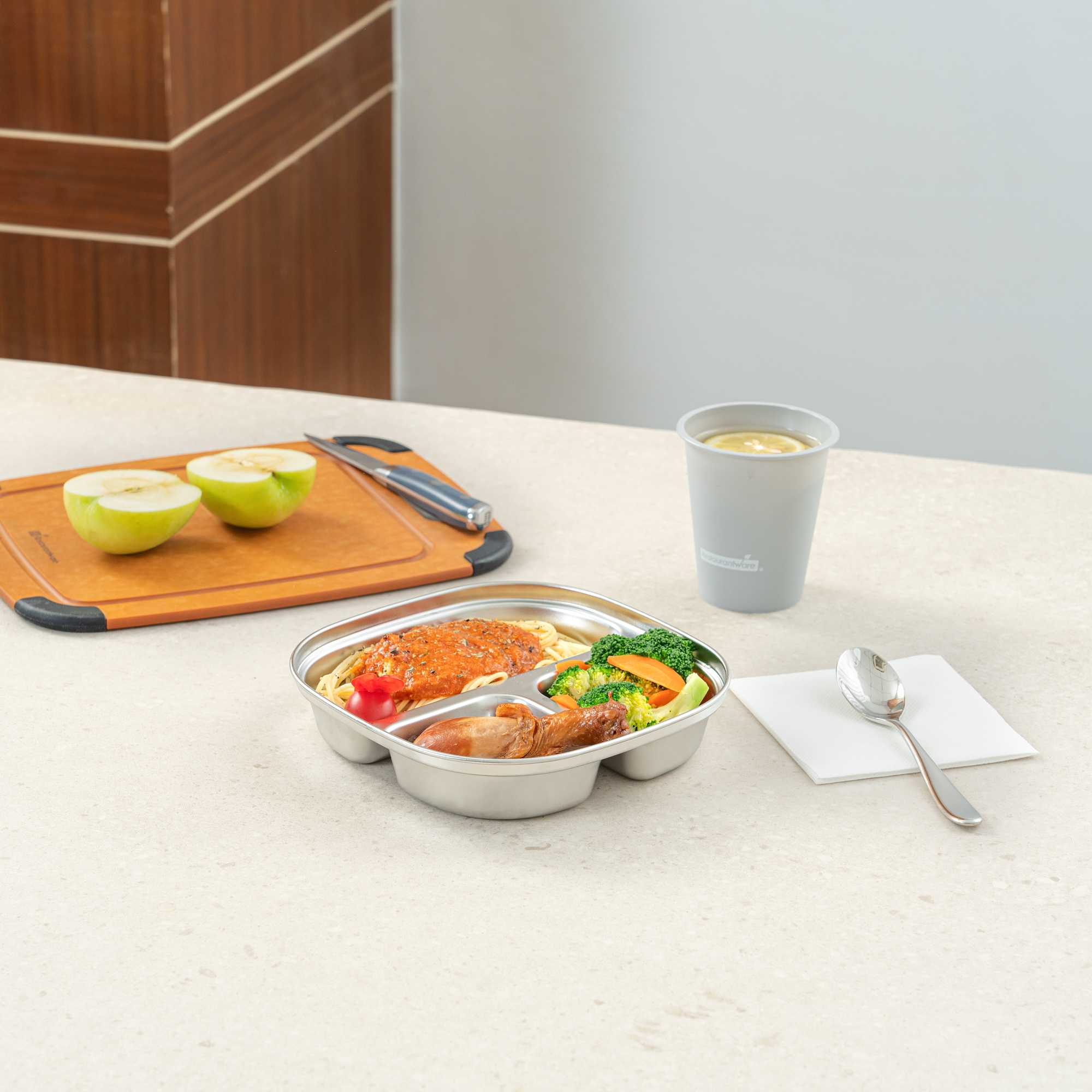 - 3-section design simplifies portion control and presentation