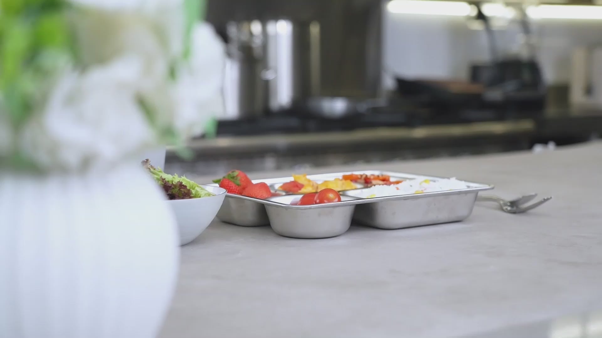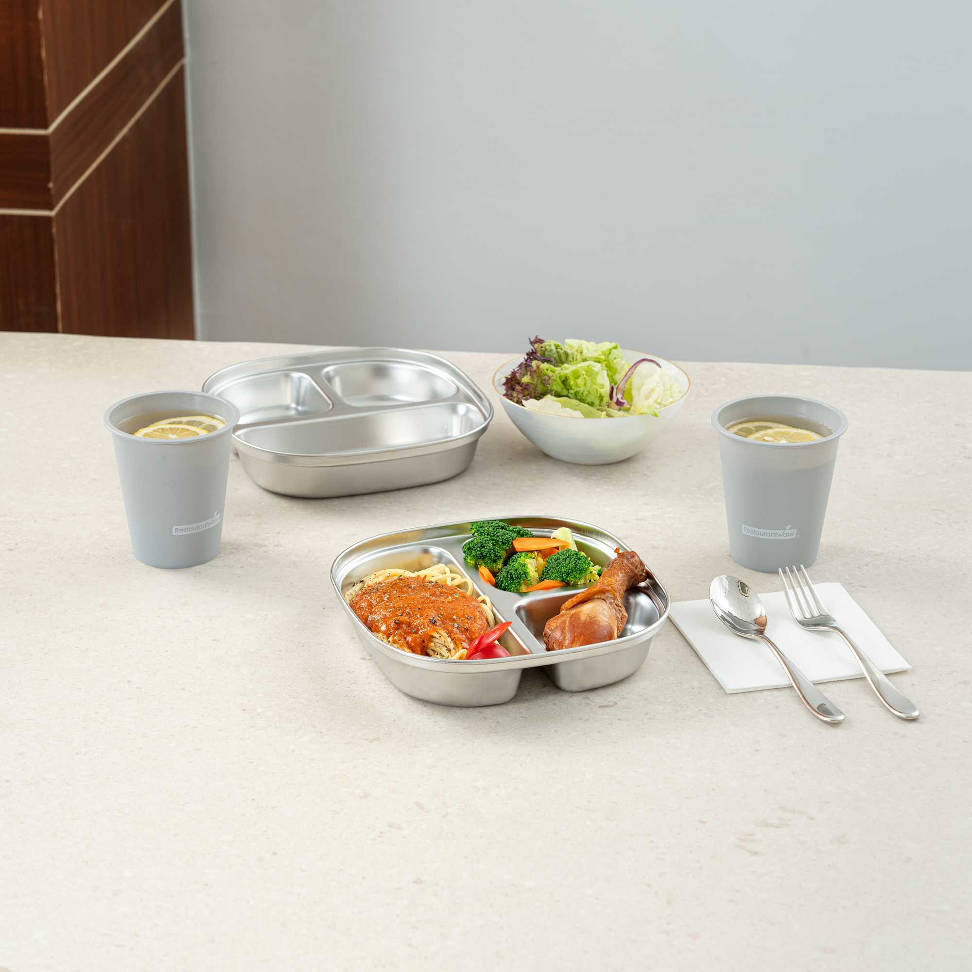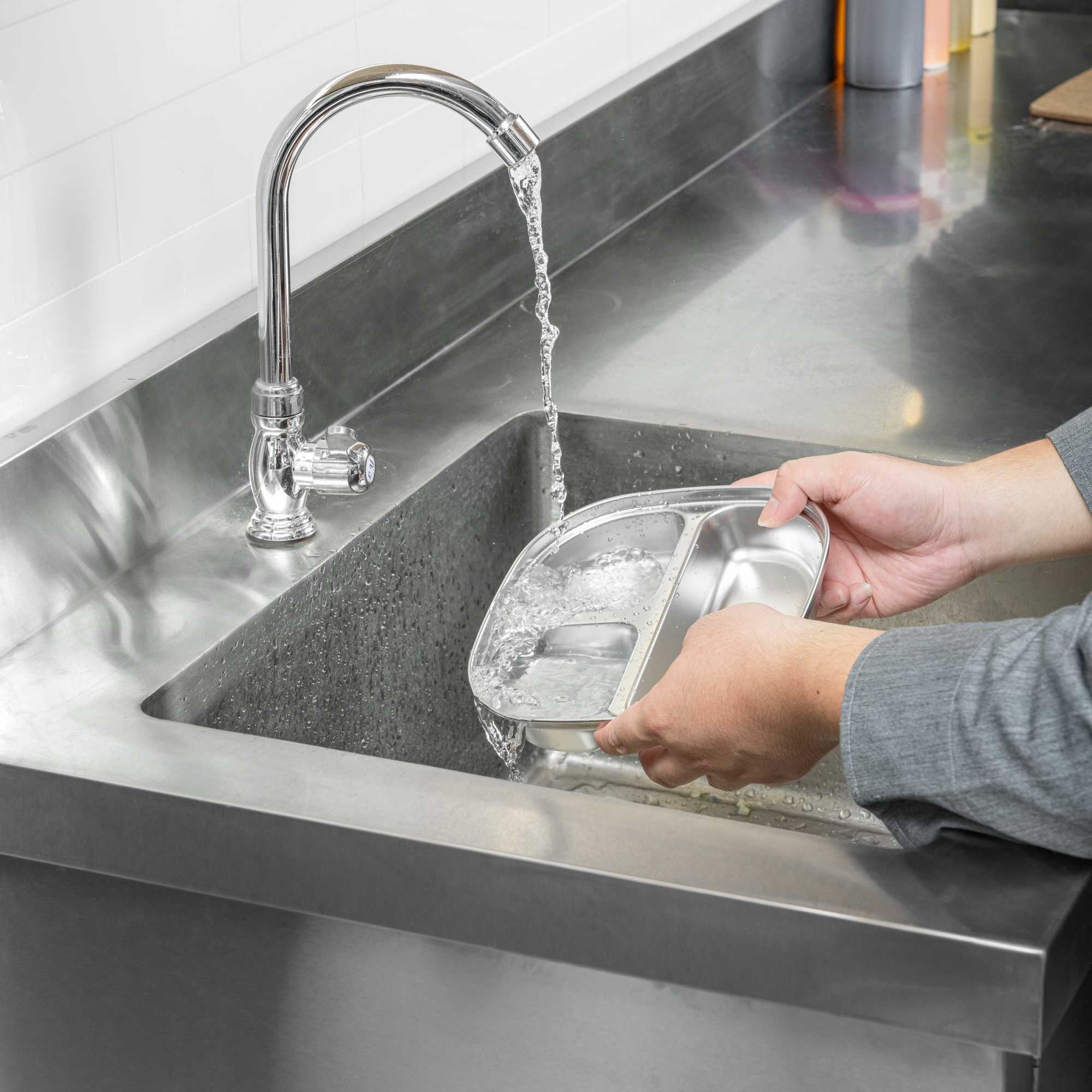 AMBIDEXTROUS SQUARE STAINLESS STEEL TRAY - 3 COMPARTMENTS