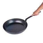 Maximize your kitchen's efficiency with versatile cooking tools. The Met Lux Carbon Steel Frypan is expertly crafted from 1.5 millimeter thick carbon steel, ensuring robust durability perfect for high-demand culinary environments. Its induction-safe design enhances its versatility, making it an ideal induction frying pan for varied cooking techniques. This nonstick frying pan features a triple-riveted handle, providing chefs with a secure and comfortable grip, essential for precision in busy kitchens. With a length of 25.98 inches, this frypan offers ample surface area while maintaining even heat distribution, supporting consistent cooking results. Its lightweight construction allows for easy maneuvering, while the oven-safe capability extends its functionality, accommodating a wide range of recipes. Invest in this reliable carbon steel frypan to elevate your foodservice operations. Sold in a 1 count box.