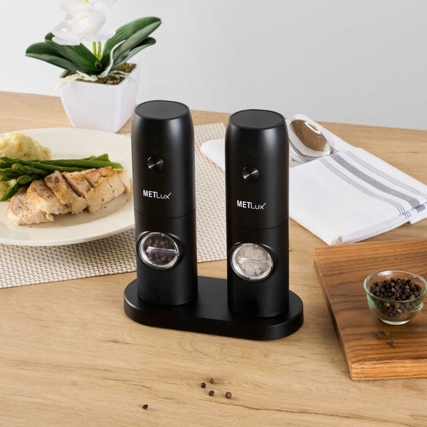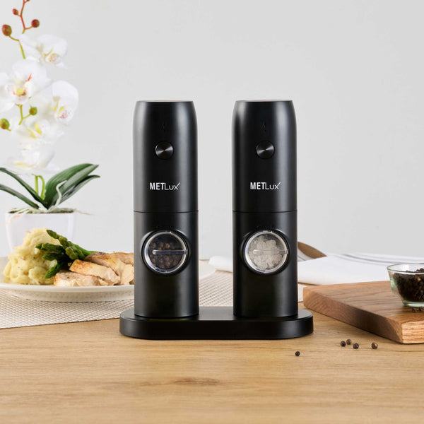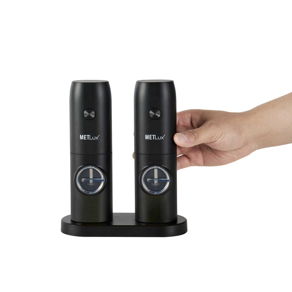 BLACK ELECTRIC SALT AND PEPPER GRINDER SET - WITH CHARGING BASE