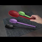 Stir up and serve savory sauces, soups, and sides with our Met Lux Black Nylon High Heat Spoon. With a premium nylon construction, this durable nylon utensil is inherently heat-resistant and can handle high temperatures up to 390°F. This long-lasting nylon cooking utensil is safe to use on non-stick cookware and won't scratch or leave marks on delicate surfaces. Plus, this nylon kitchen utensil is dishwasher-safe to shorten the cleaning process after your service hours. Color coordinate your kitchen with our selection of nylon spoons to prevent cross-contamination during food prep. This high-heat nylon spoon measures 12 inches long by 2.2 inches wide to easily mix ingredients in sauce pans. Sold in a 1 count box.