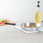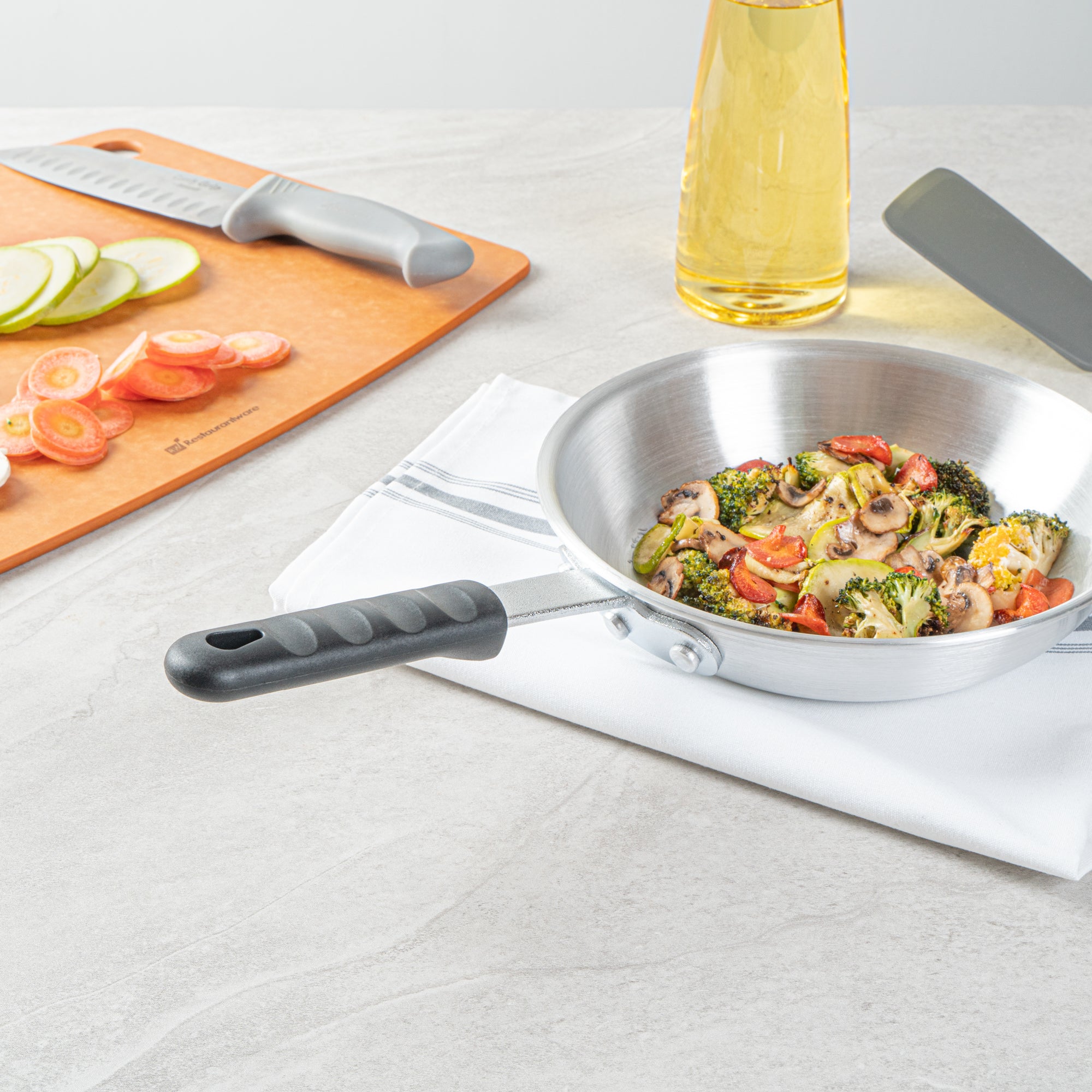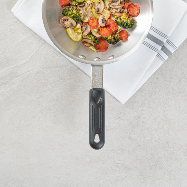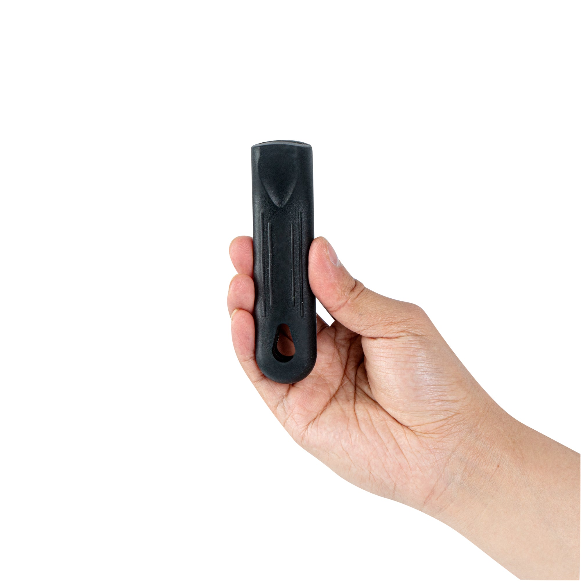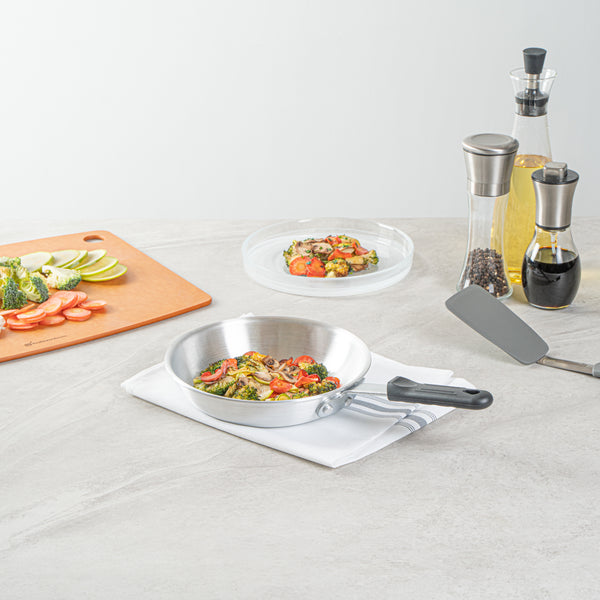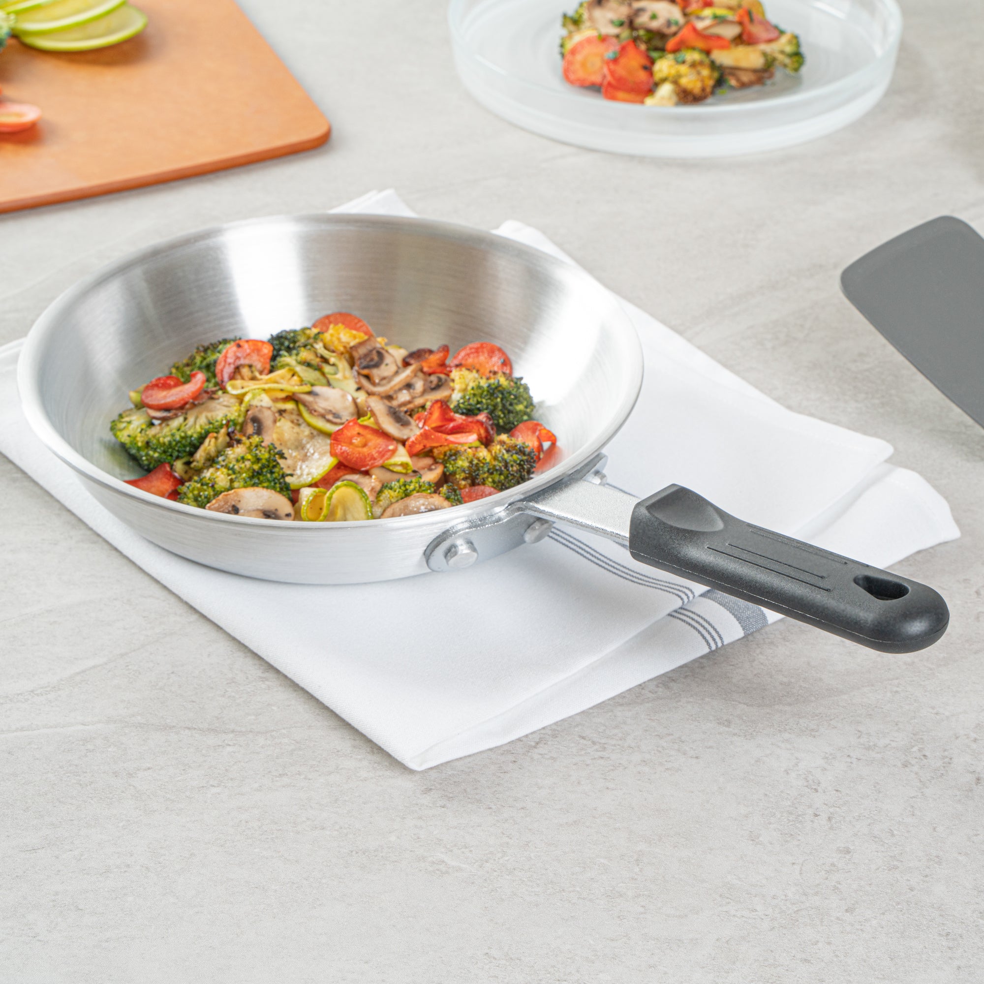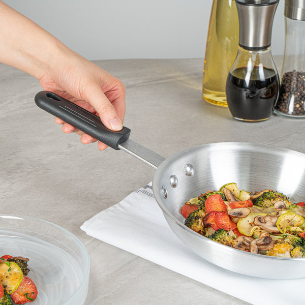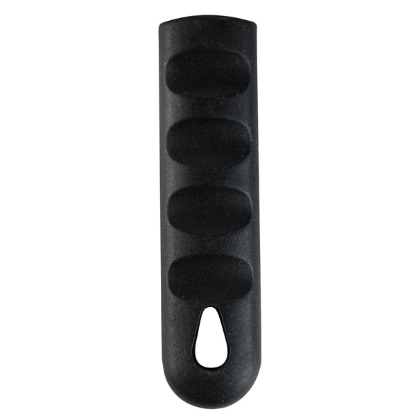 Experience comfort and convenience with our Met Lux Black Silicone Removable Pan Handle Sleeve. Pair this fry pan handle sleeve with our 8-inch and 9-inch aluminum pans for maximum efficiency. With the removable design of this pan handle sleeve, you can conveniently switch between pans without risking burns or discomfort. This silicone sleeve withstands heat temperatures up to 450F, ensuring durability and longevity in high-temperature environments. Molded indentations in the handle sleeve provide a secure and comfortable grip, reducing the risk of accidents or spills during busy service times. The hanging loop of this frying pan handle sleeve allows for easy storage and quick access when needed. This fry pan handle sleeve is dishwashable, making cleanup after cooking a breeze. Measuring 4.25 inches in length by 1 inch in width, this handle sleeve is compact and space-efficient yet big on functionality. Sold in a 1 count box. Aluminum fry pans are available and sold separately.