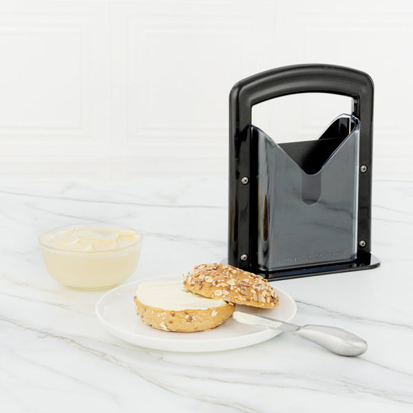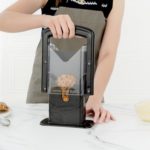 - 2-component design ensures efficient bagel slicing by providing a stable base and a top component for easy cutting