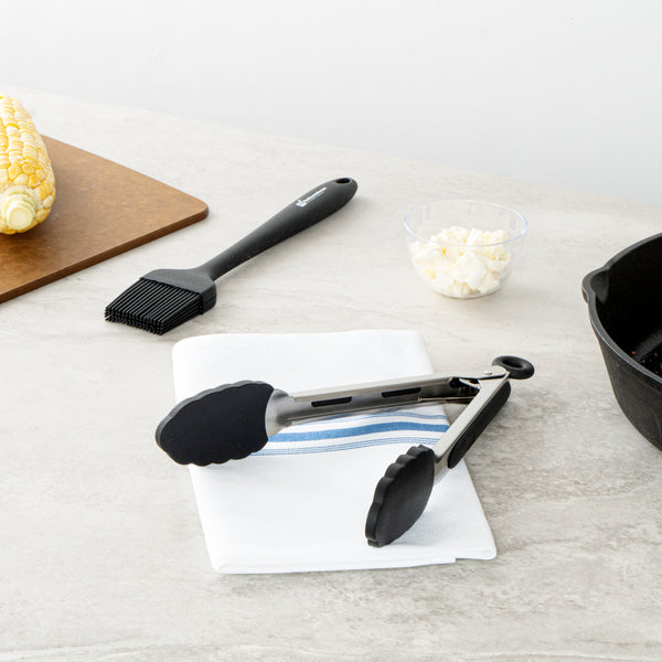 These silicone kitchen tongs feature a stainless steel body with an easy pull lock, making storage a breeze. The sturdy build ensures chores like tossing salad, flipping steaks, and more are managed effortlessly.