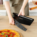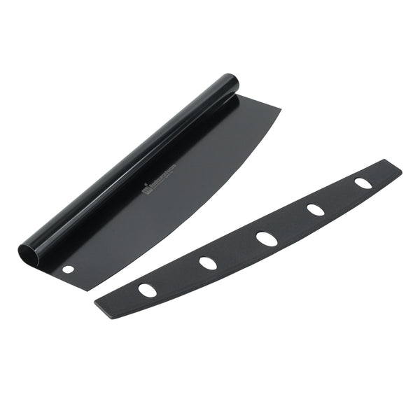 BLACK STAINLESS STEEL PIZZA CUTTER / ROCKER - WITH COVER