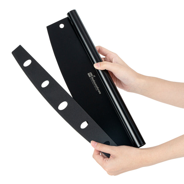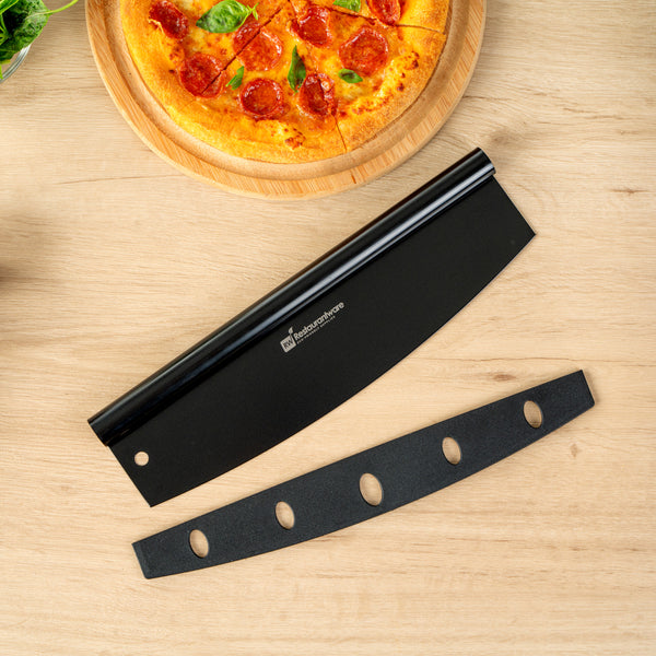 These rocking pizza knives come with a protective cover to avoid potential accidents while not in use. Keep staff protected from the sharp blades!
