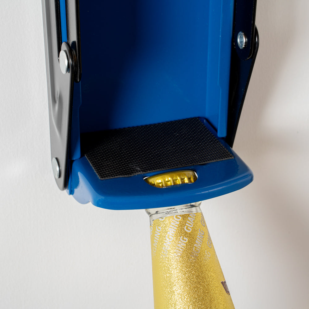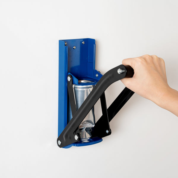 BLUE METAL CAN CRUSHER - FOR 12 / 16 OZ CANS, WALL MOUNT