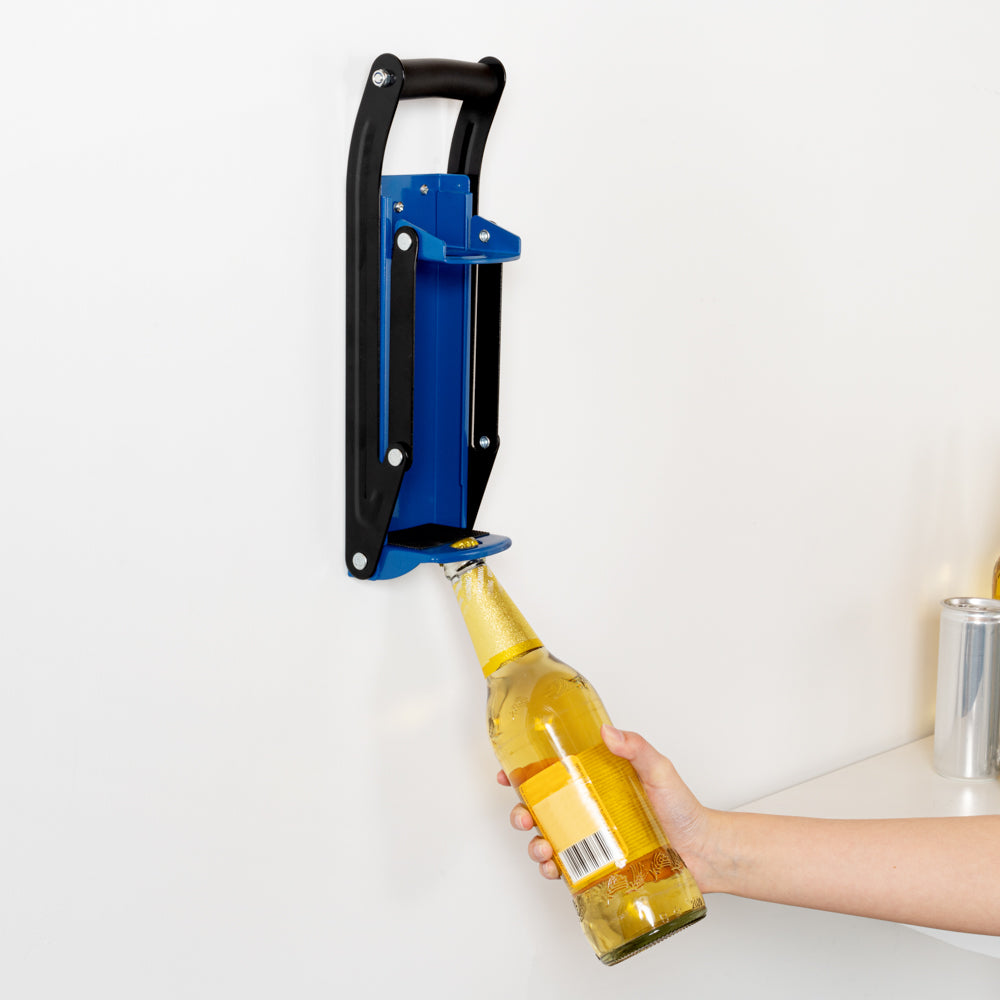 Featuring a bottle opener at the base, this mountable can crusher easily opens metal caps from bottles. Pop open beer bottles at your party with ease!