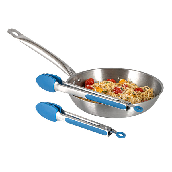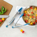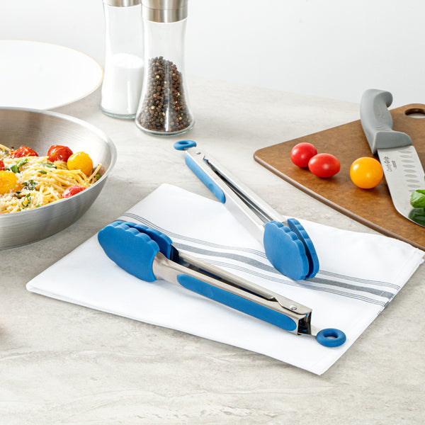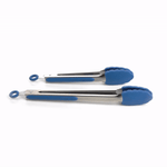 BLUE STAINLESS STEEL 2-PIECE KITCHEN TONG SET - SCALLOPED