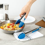 These silicone kitchen tongs feature a stainless steel body with an easy pull lock, making storage a breeze. The sturdy build ensures chores like tossing salad, flipping steaks, and more are managed effortlessly.