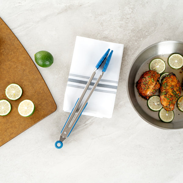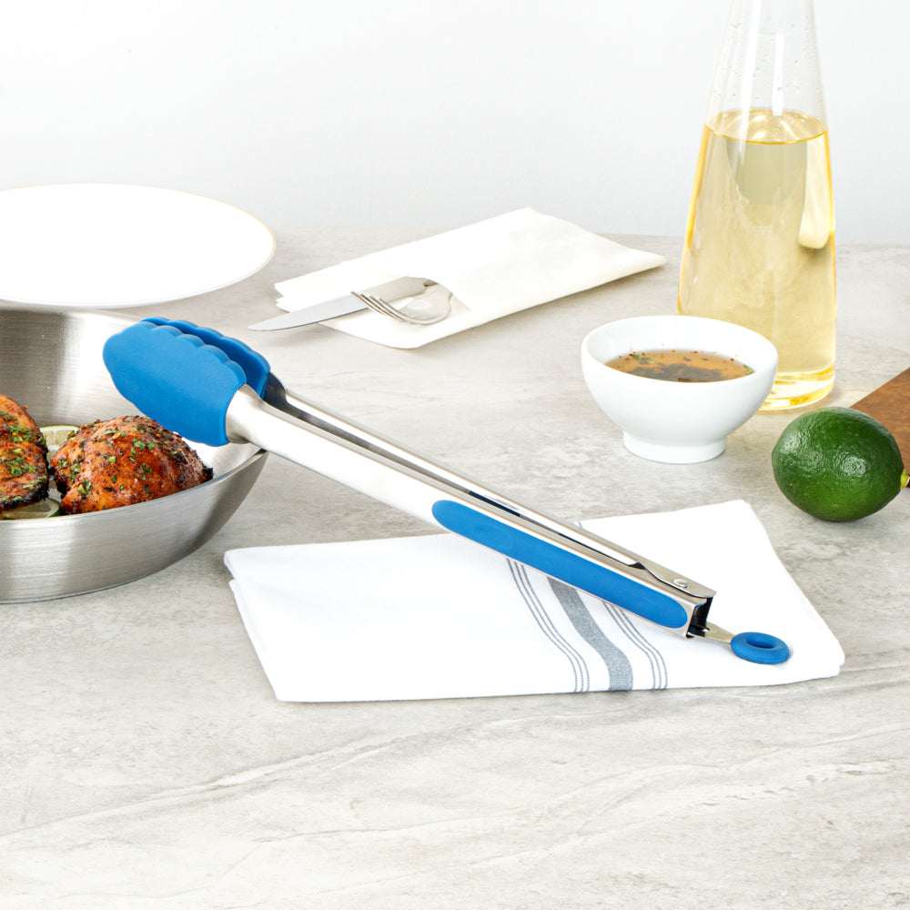 These professional chef tongs are available in two sizes and an array of appealing colors to match individual kitchen aesthetics. Also available as a set of two.