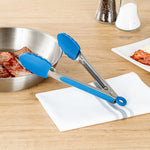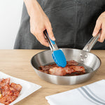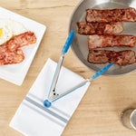 These silicone kitchen tongs feature a stainless steel body with an easy pull lock, making storage a breeze. The sturdy build ensures chores like tossing salad, flipping steaks, and more are managed effortlessly.