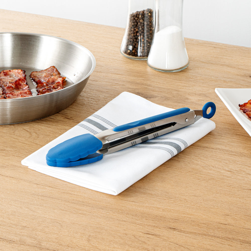 BLUE STAINLESS STEEL KITCHEN TONG - SCALLOPED