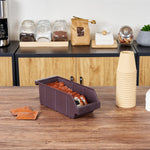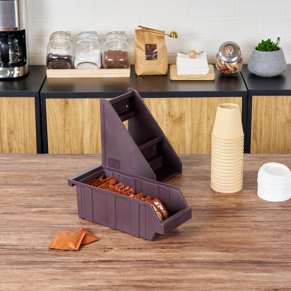 Streamline your foodservice operations with our Met Lux Brown Plastic Condiment Bin, a must-have for any efficient kitchen setup. Ideal for organizing, this condiment organizer keeps packets, napkins, and flatware neatly arranged, making it a versatile addition to your workspace. Pair this brown storage bin with our collection of compatible Met Lux stands and connector clips for a customized storage setup. Perfect for self-serve stations, this condiment holder ensures that all essentials are within easy reach for customers or staff, enhancing convenience and speed of service. Designed to save space, this condiment rack easily stacks with other units, enabling vertical storage that maximizes area efficiency. This condiment caddy provides a tidy and accessible solution for take-out order preparation stations. Measuring 12.24 inches in length by 4.96 inches in width by 4.25 inches in height, this sleek condiment storage unit fits seamlessly into any countertop arrangement. Sold in a 1 count box. Stands and connector clips are available and sold separately.