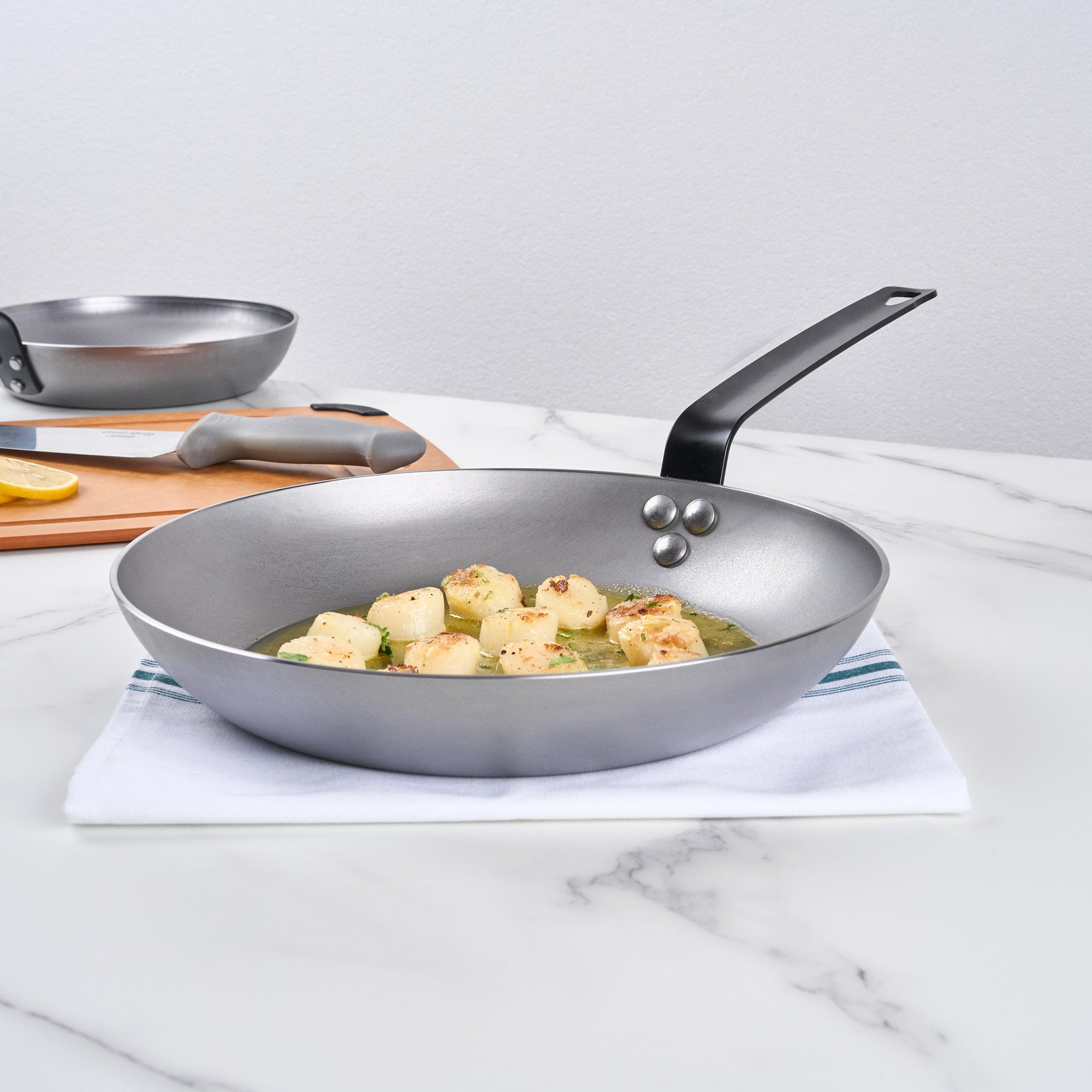 Experience unparalleled cooking versatility with a reliable carbon steel frying pan. The Met Lux Induction-Safe Carbon Steel Frying Pan features a 3 mm thick carbon steel construction that ensures robust durability, perfect for high-demand kitchens. Its triple-riveted ergonomic handle offers a secure grip, enhancing stability for precise cooking and long-lasting use. This black steel frying pan is induction-safe, accommodating a wide range of culinary techniques and promoting even heat distribution, essential for achieving consistent results. Measuring 19.8 inches in length and 11 inches in width, this non-stick carbon steel pan is expertly designed for professional chefs seeking efficiency and performance. With its oven-safe capabilities, this frying pan transitions seamlessly from stovetop to oven, catering to diverse cooking styles. Elevate your kitchen operations with this essential cookware solution. Each order includes 1 Met Lux Induction-Safe Carbon Steel Frying Pan.