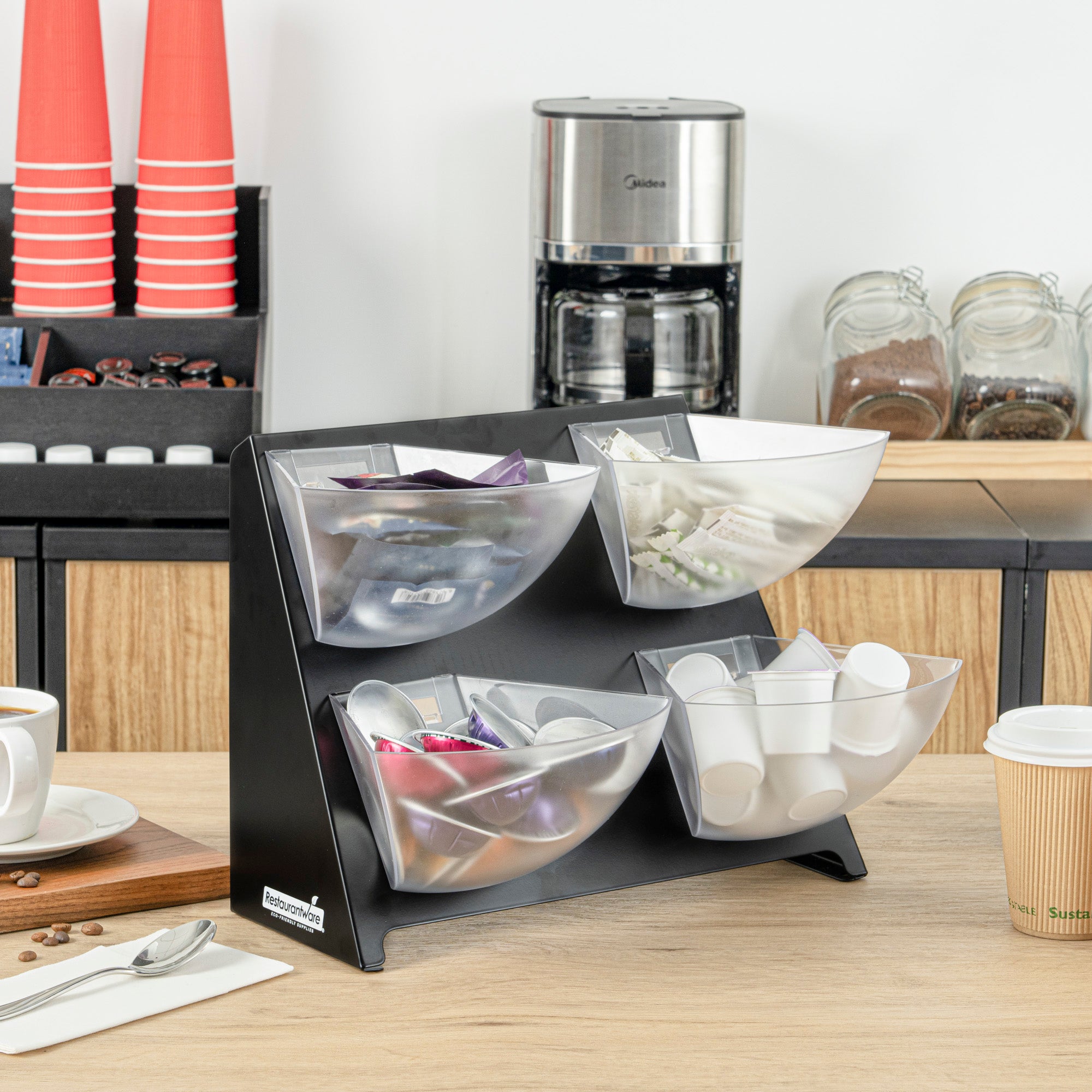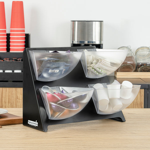 CONDIMENT HOLDER - BLACK, STEEL - 4 CLEAR BINS