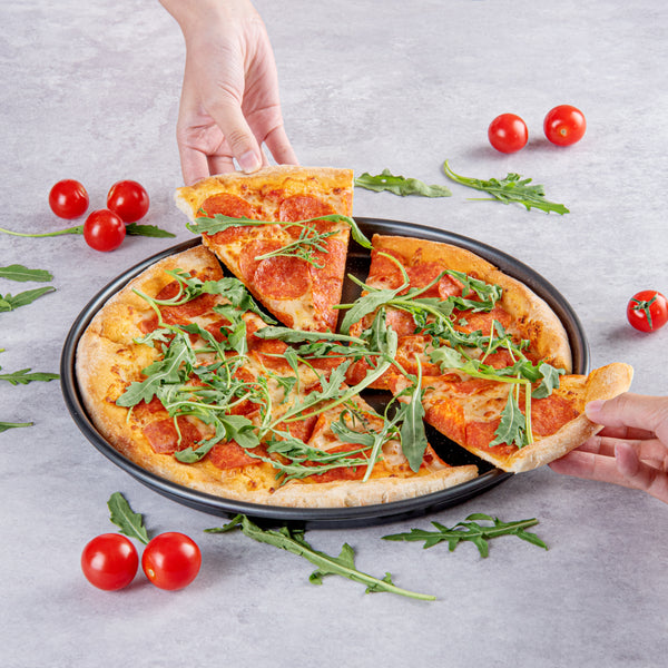 These pizza bake pans are conveniently built for baking and serving in one go. Easily use the same pan without needing another one!