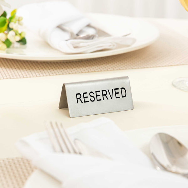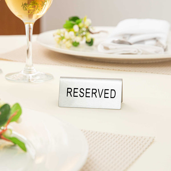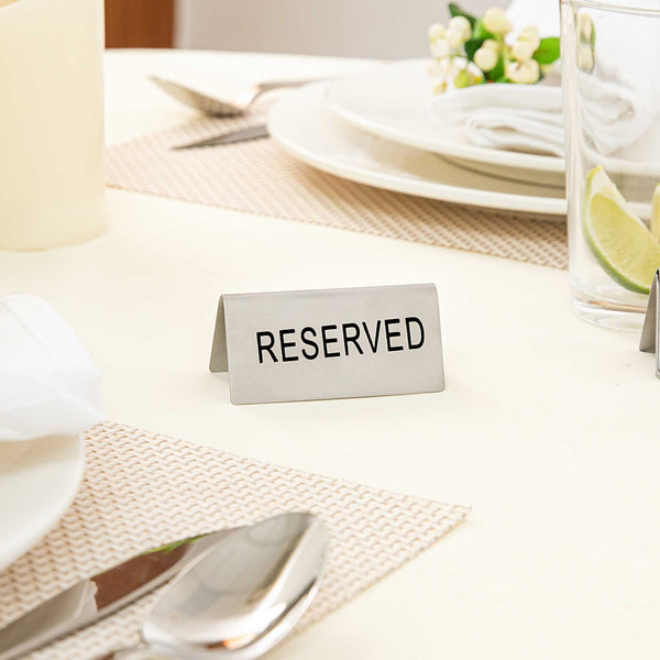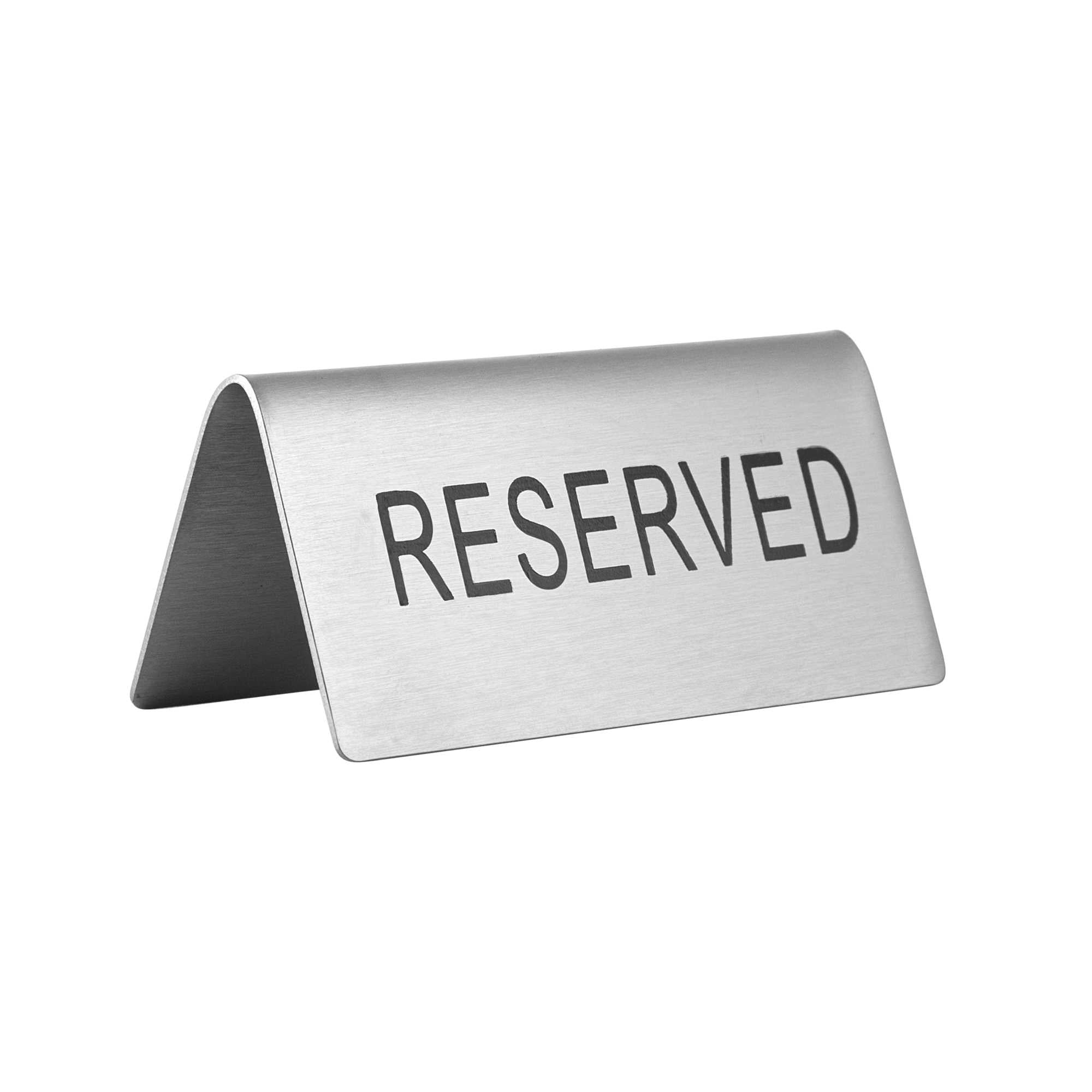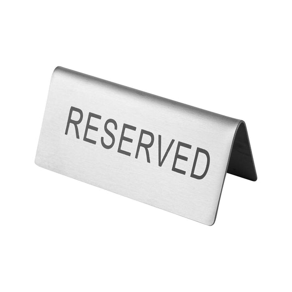 DOUBLE-SIDED STAINLESS STEEL "RESERVED" TABLE TENT SIGN