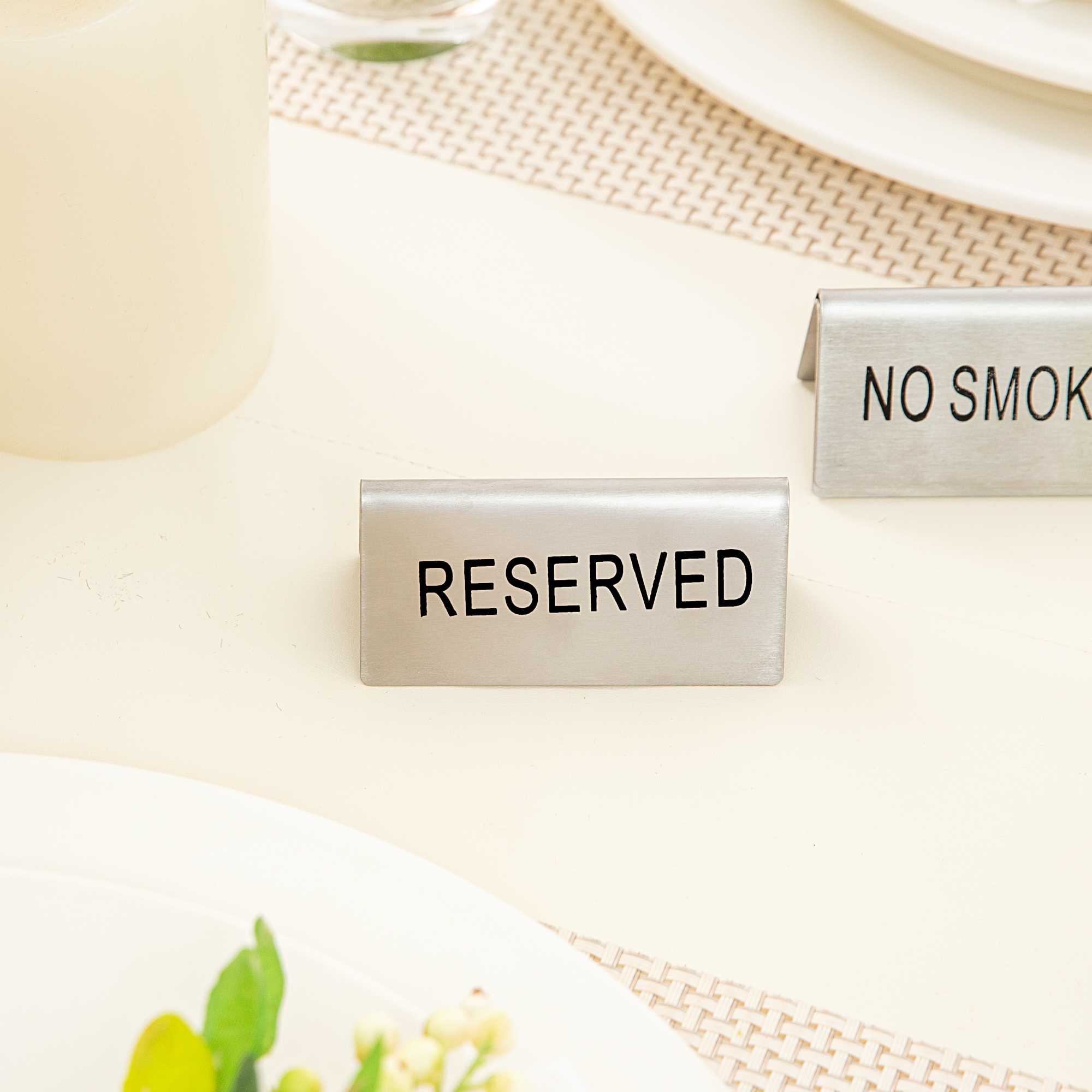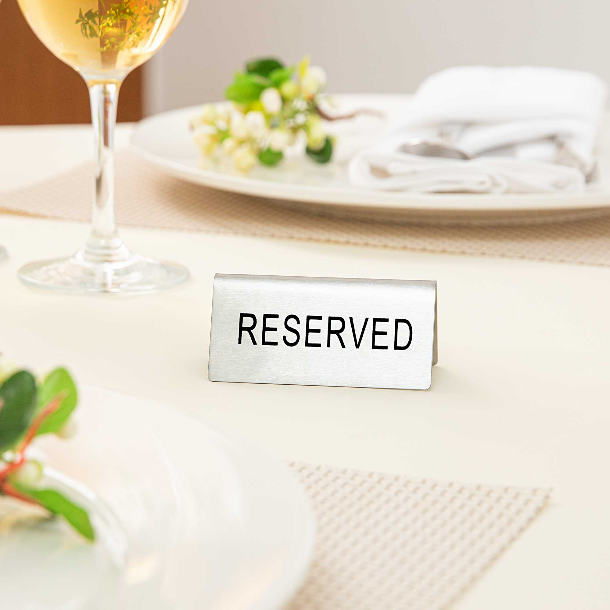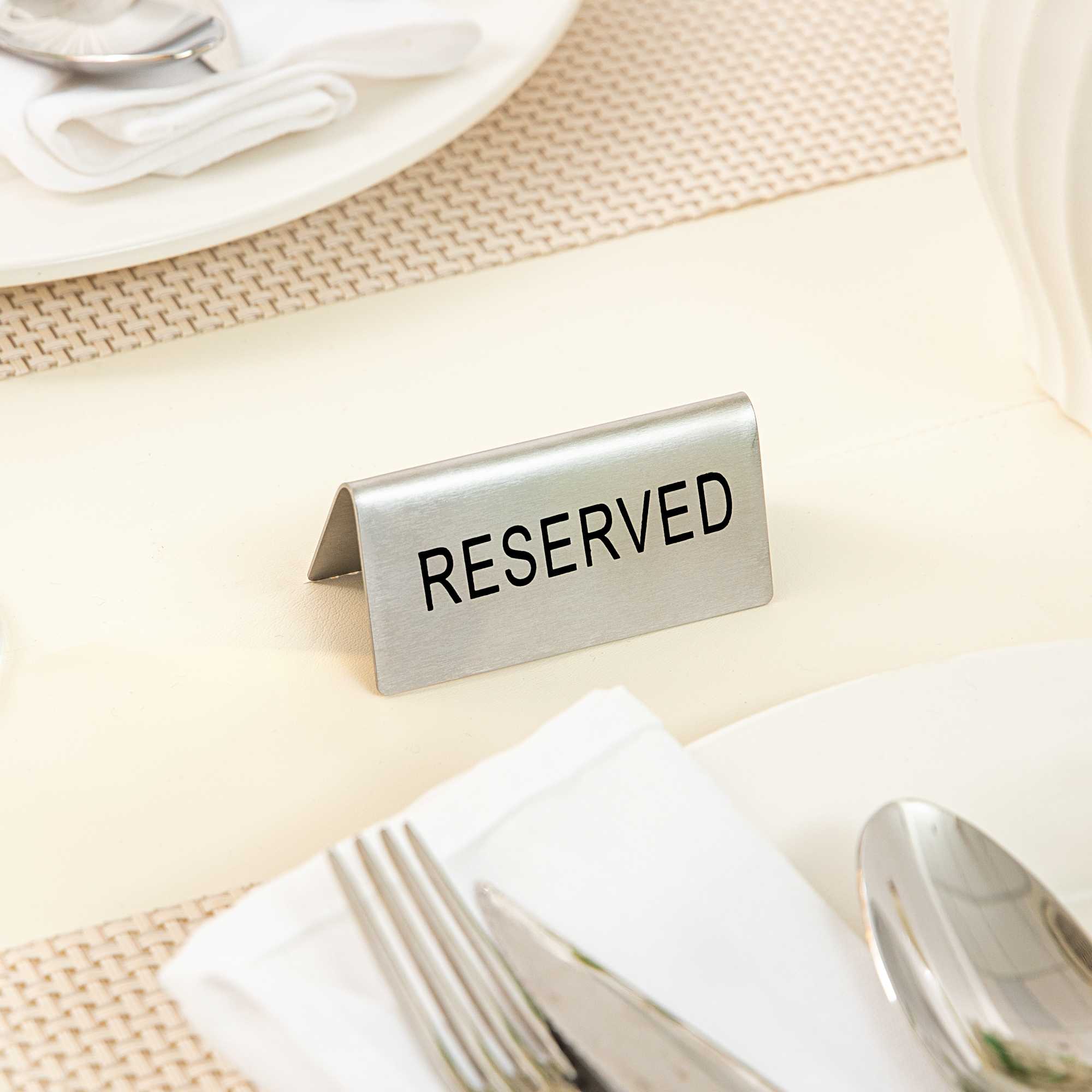 DOUBLE-SIDED STAINLESS STEEL "RESERVED" TABLE TENT SIGN