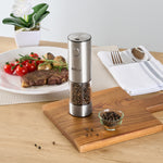 BLACK ELECTRIC SALT OR PEPPER GRINDER - RECHARGEABLE, WITH LED LIGHT