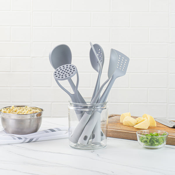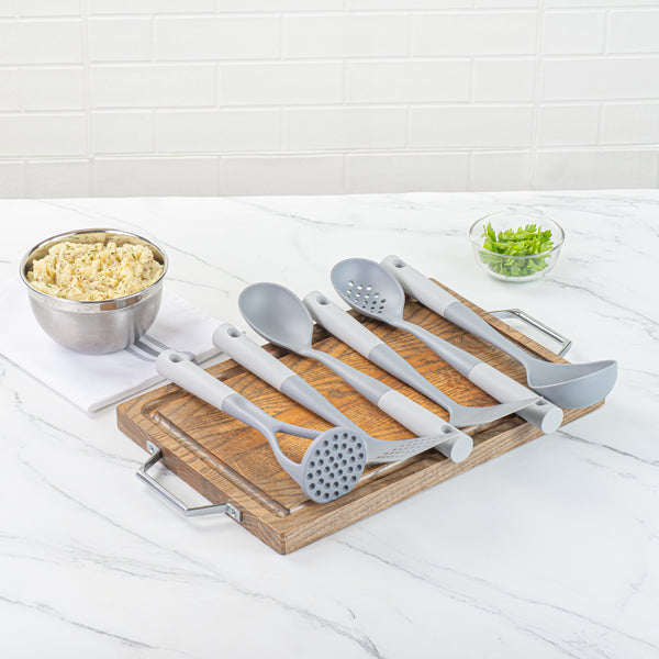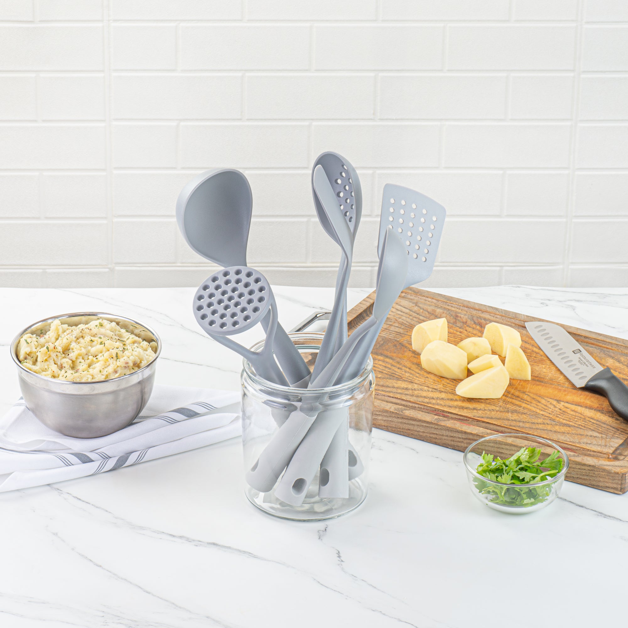 GRAY AND WHITE NYLON HIGH HEAT COOKING UTENSIL SET - 6-PIECE