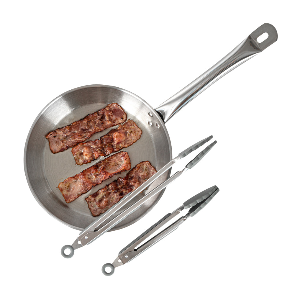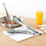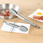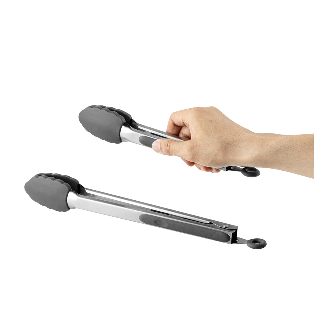 These silicone kitchen tongs feature a stainless steel body with an easy pull lock, making storage a breeze. The sturdy build ensures chores like tossing salad, flipping steaks, and more are managed effortlessly.