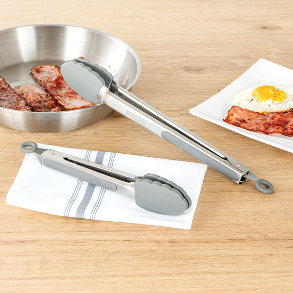 GRAY STAINLESS STEEL 2-PIECE KITCHEN TONG SET - SCALLOPED